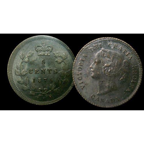 THE FINEST KNOWN! 1875H Small date 5¢ ICCS MS64 PQ+. Lovely blueish tones over full underlying luster. Wow! An amazing "Victorian" key date. Excellent strike with clean fields and great surfaces. The nicest example ever handled by TCNC. A KILLER! The rarest and toughest of this series. Expect strong bidding. Worth a premium bid.