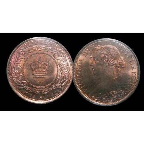 THE FINEST KNOWN! Nova Scotia 1/2¢ 1864 ICCS MS65 Red PQ+. Wow! An amazing "Victorian" example. Excellent strike with clean fields and great surfaces. The nicest example ever handled by TCNC. Expect strong bidding. Worth a premium bid.