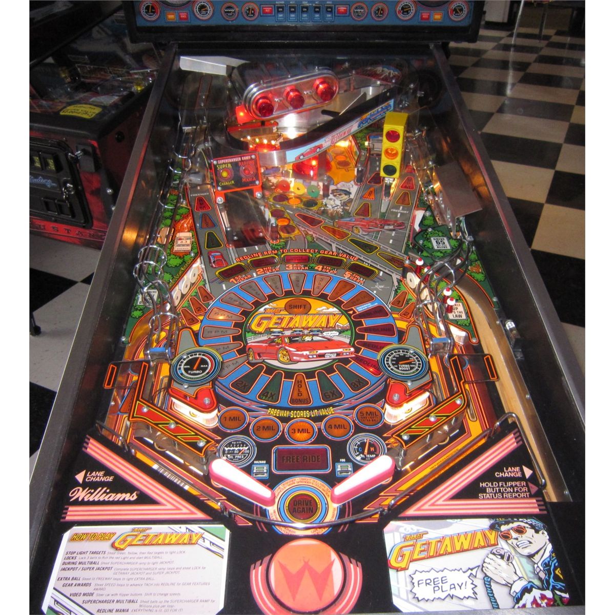 This is Williams second offering of the Cops & Robbers theme. Features Multi Ball, Playfield Magnets, Kick Back Lane, Gear Shift, and a suspended raceway. Great ZZ Top music. This is a mint example of this title. Totally restored including all new cabinet art. It plays perfectly with all functions checked by a pinball tech. The playfield has been cleaned and polished and worn rubber and burnt bulbs replaced.