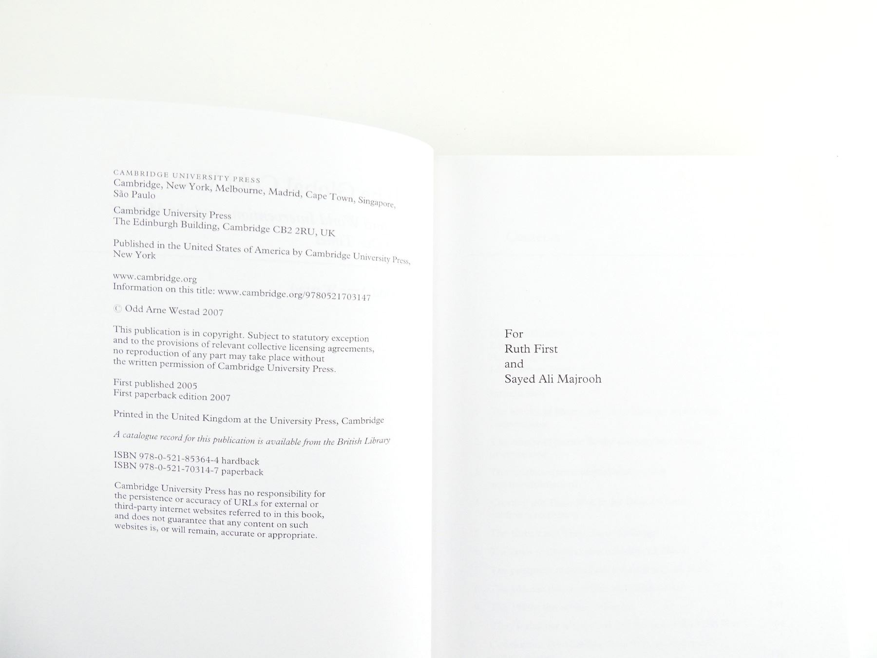 (1) BY ODD ARNE WESTAD, SOFT COVER, ISBN: 0-521-70314-X. SEE PHOTOS.