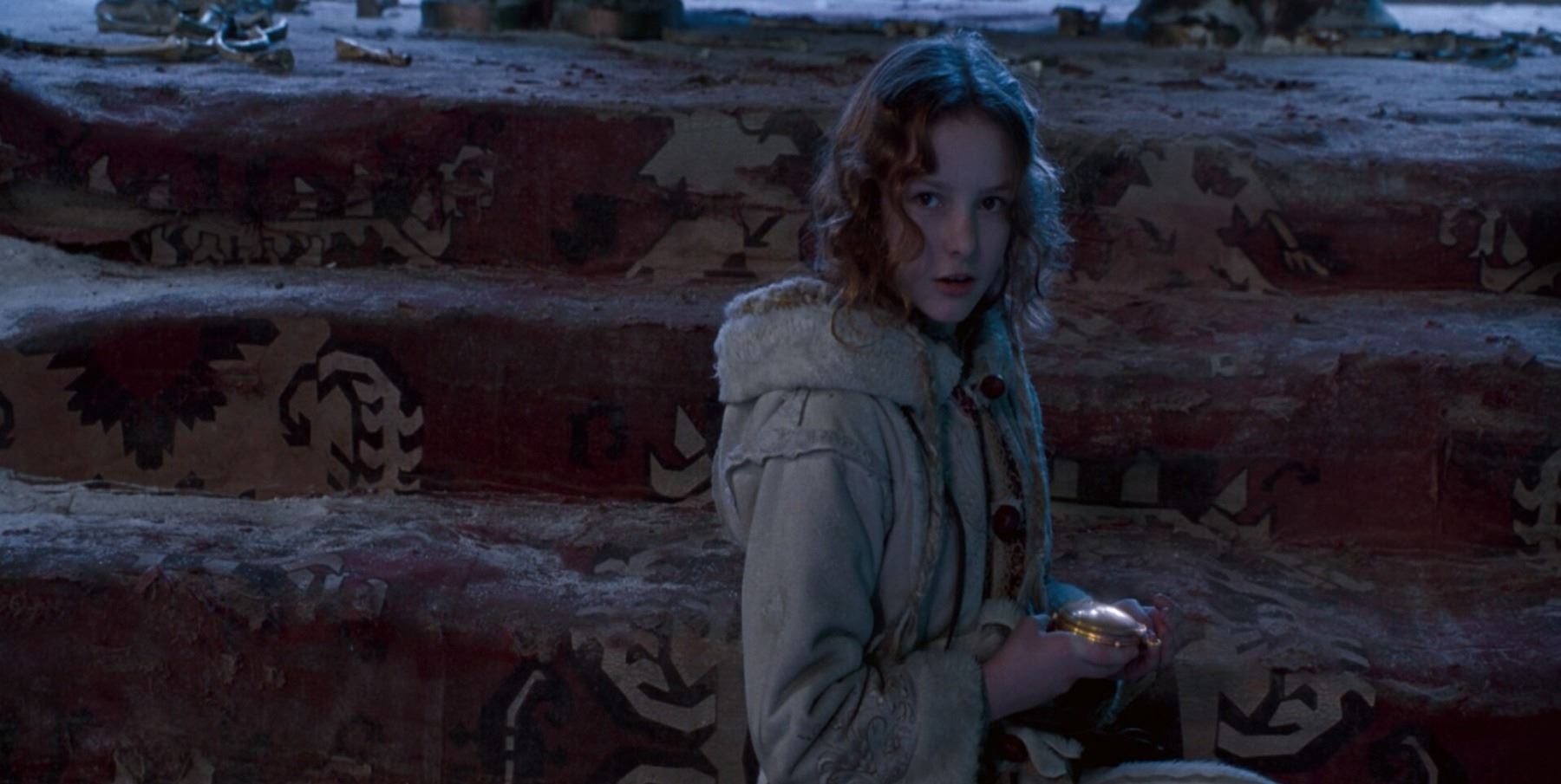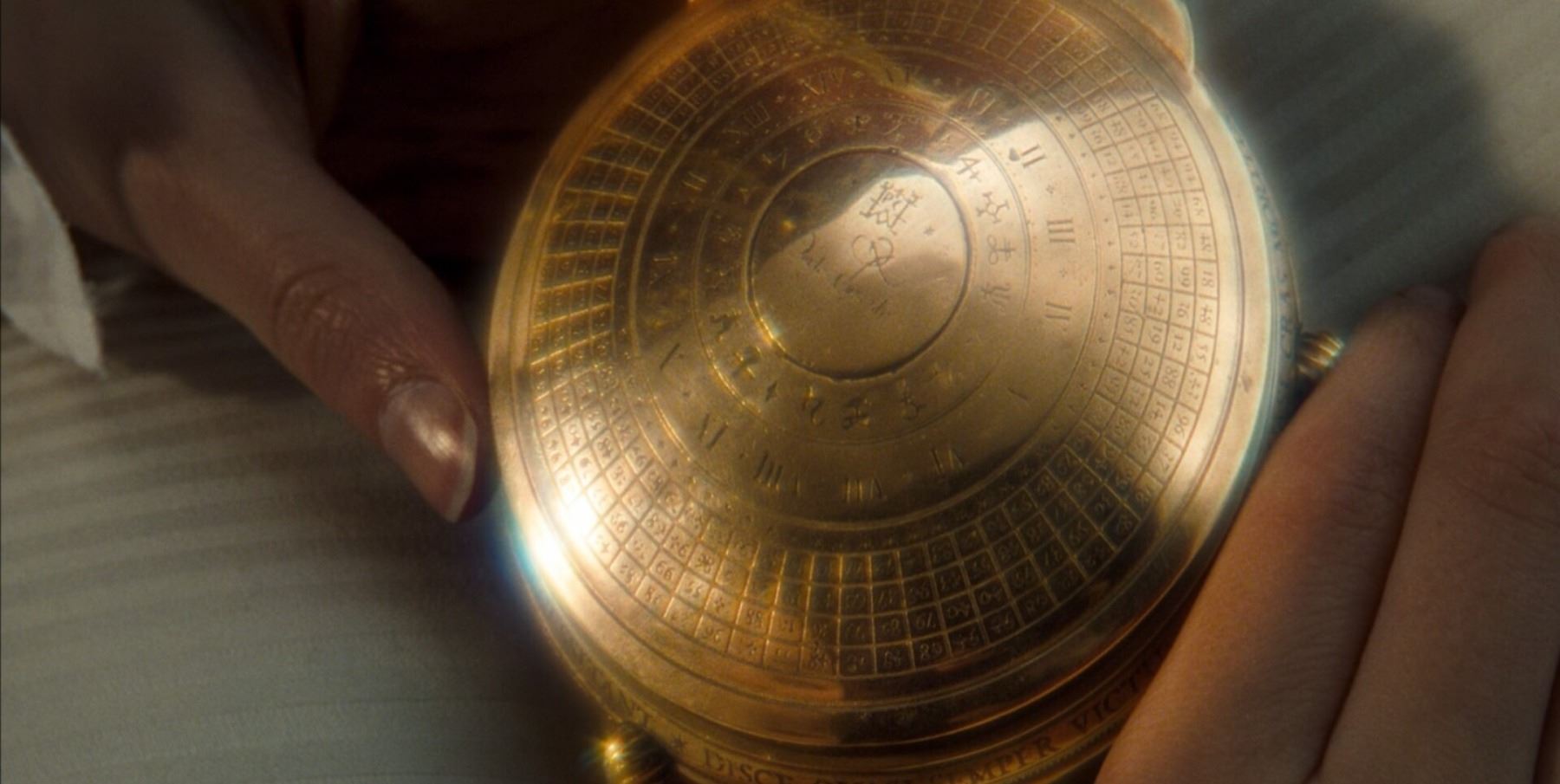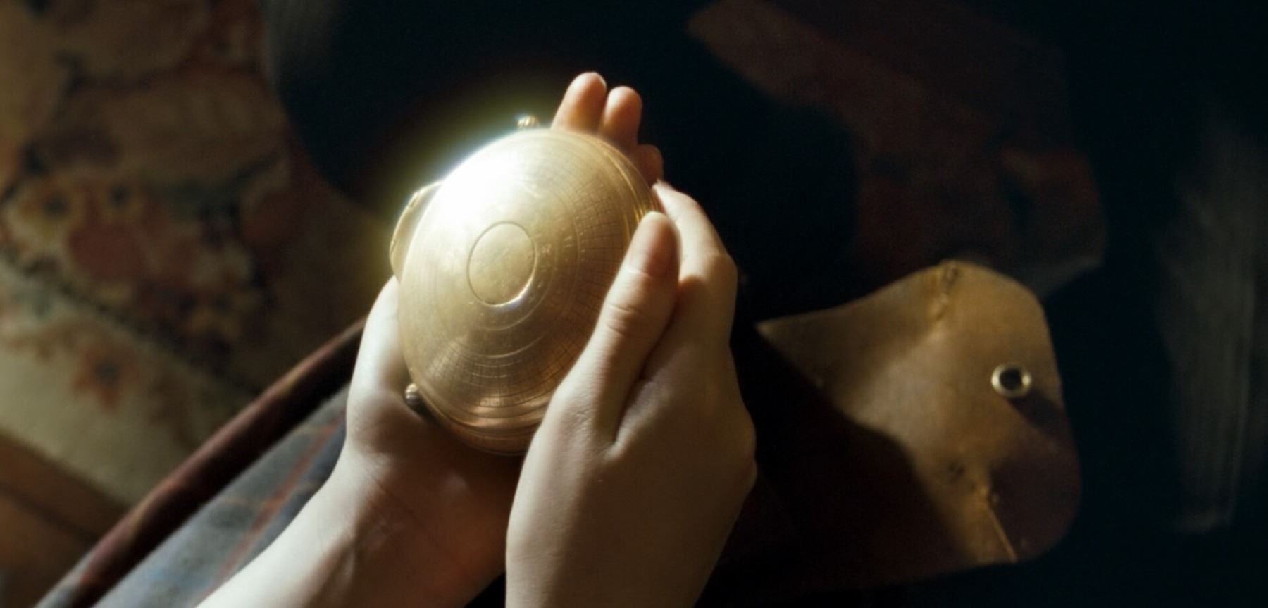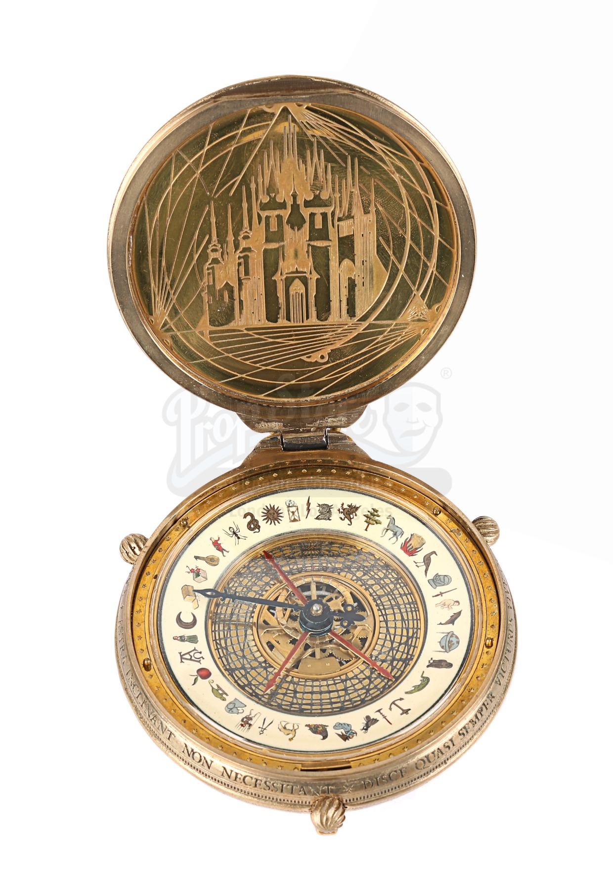 Lyra's (Dakota Blue Richards) practical hero alethiometer from Chris Weitz's fantasy adventure The Golden Compass. The alethiometer is the "golden compass" of the film's title and was thus a key prop, which featured heavily throughout the movie. This spiritual device gave a true answer for any question asked, and was used by Lyra as she travelled north to rescue her best friend Roger (Ben Walker) and other kidnapped children from the Gobblers.