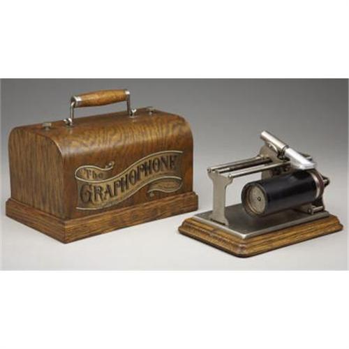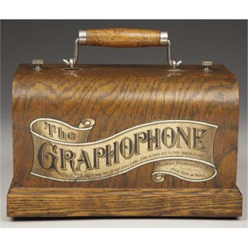 <B>“THE GRAPHOPHONE” TYPE QC</B></I> - Manufactured between 1903 and 1908, this has a fine oak case, clear decal, this model with case originally sold for $7.50.<BR><BR><B>Condition:</B></I> Beautiful Condition.<BR><BR><b>Shipping:</b> Miscellaneous Collectibles, Larg (<a target="_blank" href="http://www.heritageauctions.com/common/shipping.php">view shipping information</a>)