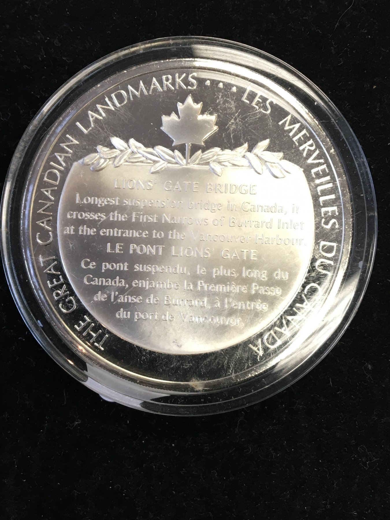 1.3oz ASW.NICE ENCAPSULATED MEDALLION .LIONS GATE BRIDGE ,VANCOUVER