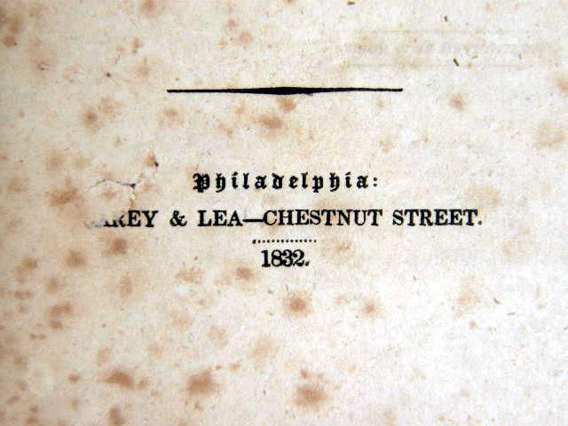 First American edition in two volumes, Carey and Lea, Chestnut Street, Philadelphia, 1832, 8vo. BAL 3858; Spiller and Blackburn 16. Bound in modern plain boards with paper spine labels, a little foxing in Vol. I, more in Vol. II, wear and staining to covers.