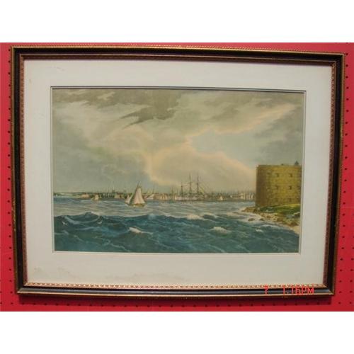The Hudson River Portfolio contains twenty aquatints views of the Hudson River Valley engraved by John Hill after paintings by William G. Wall. This is one of the finest views of the Hudson River ever published. The Hudson River runs 315 miles from the Adiriondack Mountains to New York City. The views start near Lake Luzerne and end with this scene which is a view of New York City from Governor's Island. The original proposal was for twenty four(24) prints; however only twenty were ever published between 1821-1825. After much investigation--This is not a Original BUT restrikes from about 40-50 years ago. Originals are worth about $6000-$8,000.
