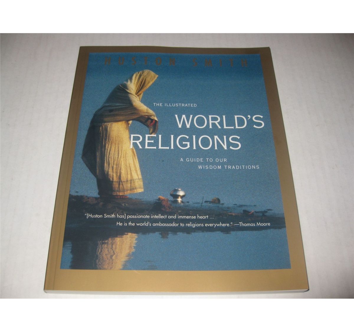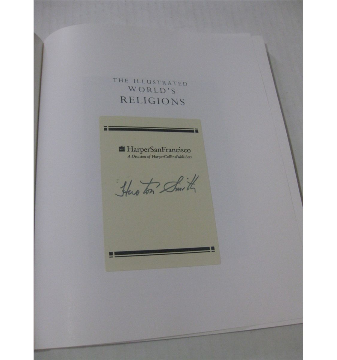 THE ILLUSTRATED WORLDS RELIGIONS A Guide to Our Wisdom Traditions” soft cover Book HAND SIGNED by Huston Smith on a book plate in black felt pen and affixed to the first inside page.