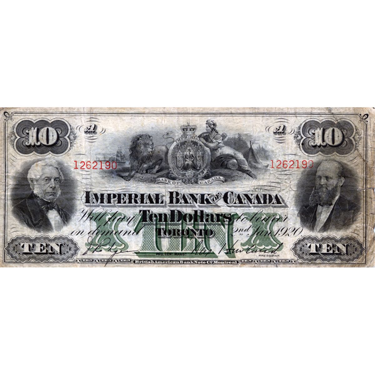 THE IMPERIAL BANK OF CANADA. $10.00. Jan. 2, 1920. CH-375-16-12. No. 1262190/A. PMG graded Fine-15.