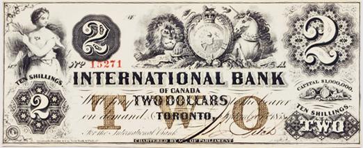 THE INTERNATIONAL BANK OF CANADA. $2.00. Sept. 15, 1858. CH-380-10-08-12. No. 15271. PMG graded Unc-64. EPQ.