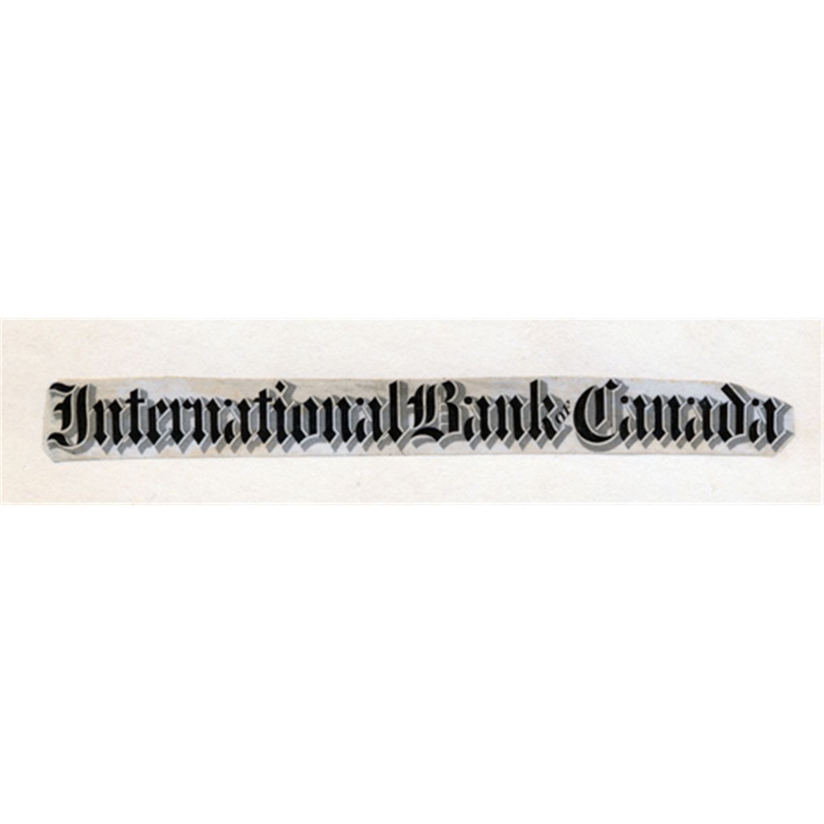 THE INTERNATIONAL BANK OF CANADA. Die Proof Vignette of the bank name in old English scrip. 2” x 4 3/4”.