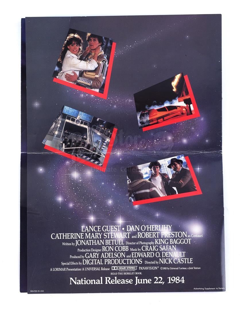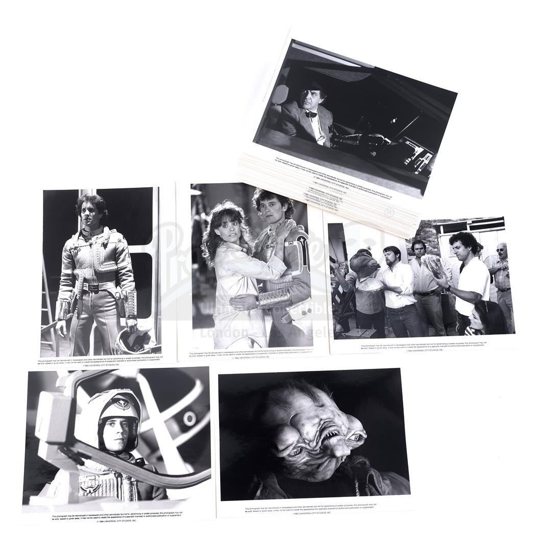 An archive of production photography and ephemera from the promotion of Nick Castle's sci-fi adventure The Last Starfighter. Alex Rogan (Lance Guest) was recruited by alien Centauri (Robert Preston) to join the battle against evil Kodan invaders.