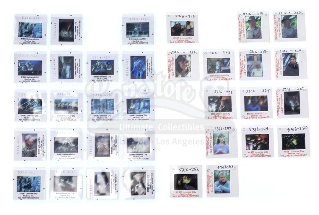 This set consists of a press kit with 11 glossy black-and-white stills and 10 cast and credits packets inside; 128 additional glossy stills; a call sheet; a cast and crew list; an incomplete shooting schedule; a promotional brochure; and 208 colour film slides. It is in excellent overall condition with minor signs of use, including creasing and edge wear throughout. Dimensions (largest): 33 cm x 24.75 cm x 2.5 cm (13" x 9 3/4" x 1"); (smallest): 7.75 cm x 7.75 cm x 2.5 cm (3" x 3" x 1")