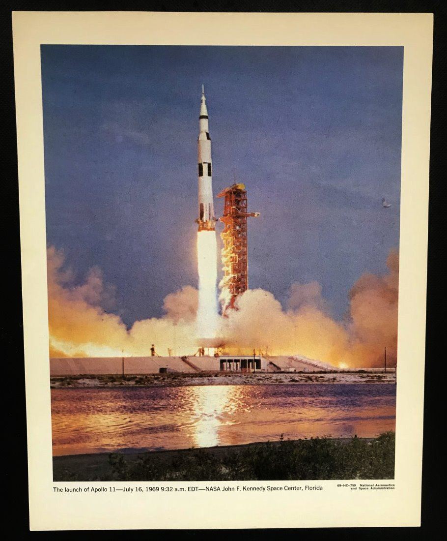 An original N.A.S.A. 14x11 inch lithograph of the launch of Apollo 11, in 1969 from Kennedy space center.