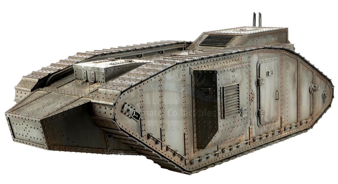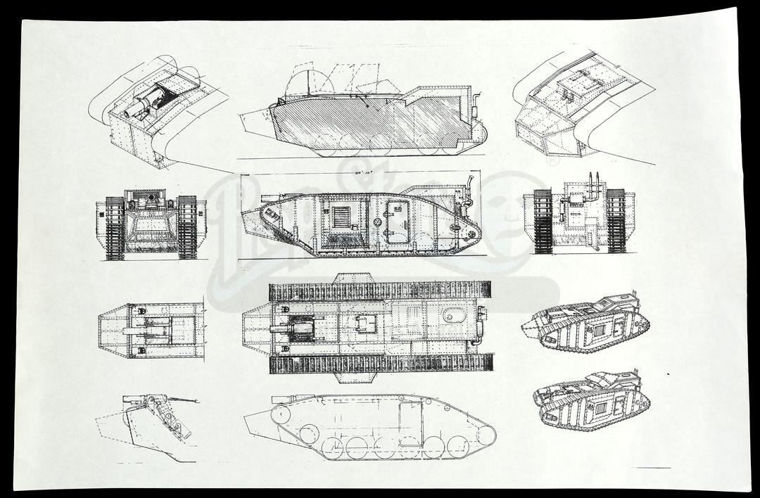 A bank robbery model miniature tank with blueprints from Stephen Norrington's fantasy adventure The League of Extraordinary Gentlemen. In the opening scene, The Fantom's (Richard Roxburgh) men used an advanced tank to break into the Bank of London. The tank was modeled on Centurion ARV tanks with additional influence from the British Mark V widely deployed during World War I.