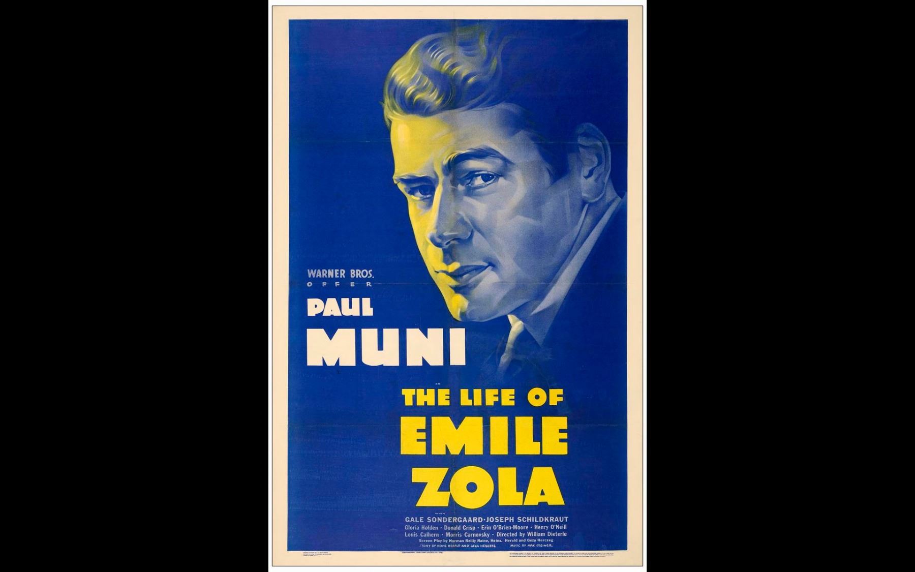 This rare poster showcases a striking portrait of Paul Muni in his Oscar-winning portrayal of the French novelist and political activist Emile Zola. As fascism was gaining ground in Europe, the film championed the ideals of truth and justice, condemning jingoistic militarism through its portrayal of Zola's efforts to exonerate the unjustly imprisoned military officer Alfred Dreyfus from Devil's Island. Hailed by contemporary critics as the most lavish biopic of its time, the movie also garnered Academy Awards for Best Supporting Actor and Best Picture.