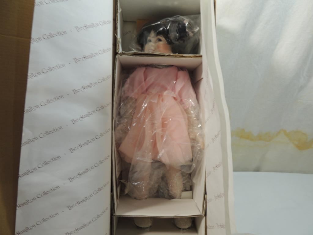 KING WORLD FINE PORCELAIN DOLL, HAMILTON COLLECTION, NEW IN BOX PORCELAIN DOLL. GREAT COLLECTION FROM PRIVATE COLLECTOR, NUMBERED DOLL, LIMITED EDITION WITH COA. ORIGINAL BOX AS SHOWN SEE PHOTO FOR MORE DETAILS.