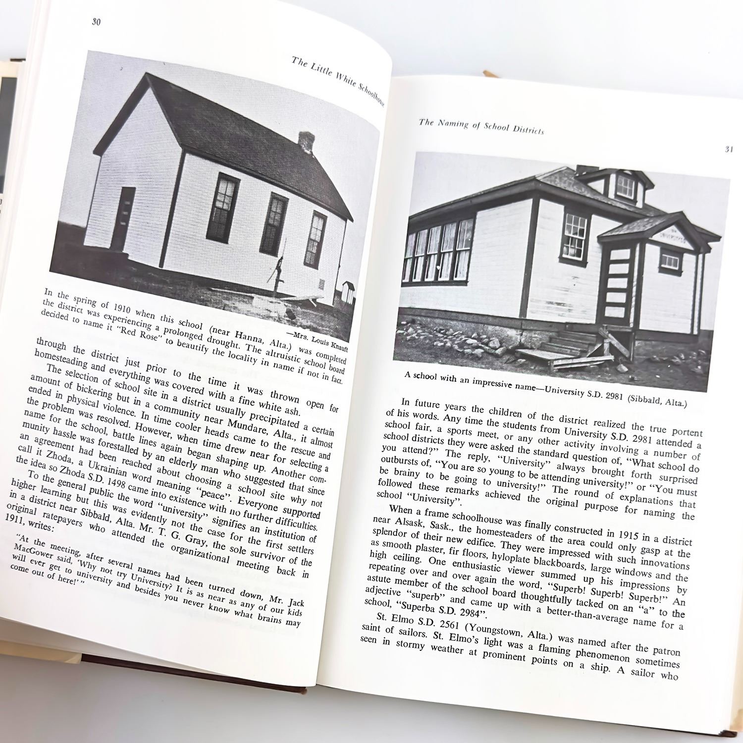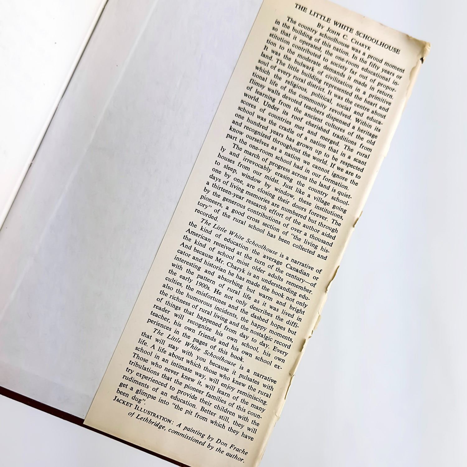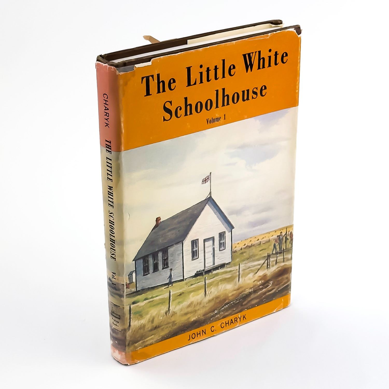 #8582 - VINTAGE HISTORY BOOK OF WHITE SCHOOL HOUSES IN ALBERTA, SASKATCHEWAN ETC. HARDCOVER WITH DUST JACKET - THE LITTLE WHITE SCHOOLHOUSE VOLUME 1 BY JOHN C. CHARYK. FOURTH PRINTING 1977 BY MODERN PRESS, SASKATOON, SASKATCHEWAN, CANADA - 302 PAGES. MEASURES: 6.25” X 9”