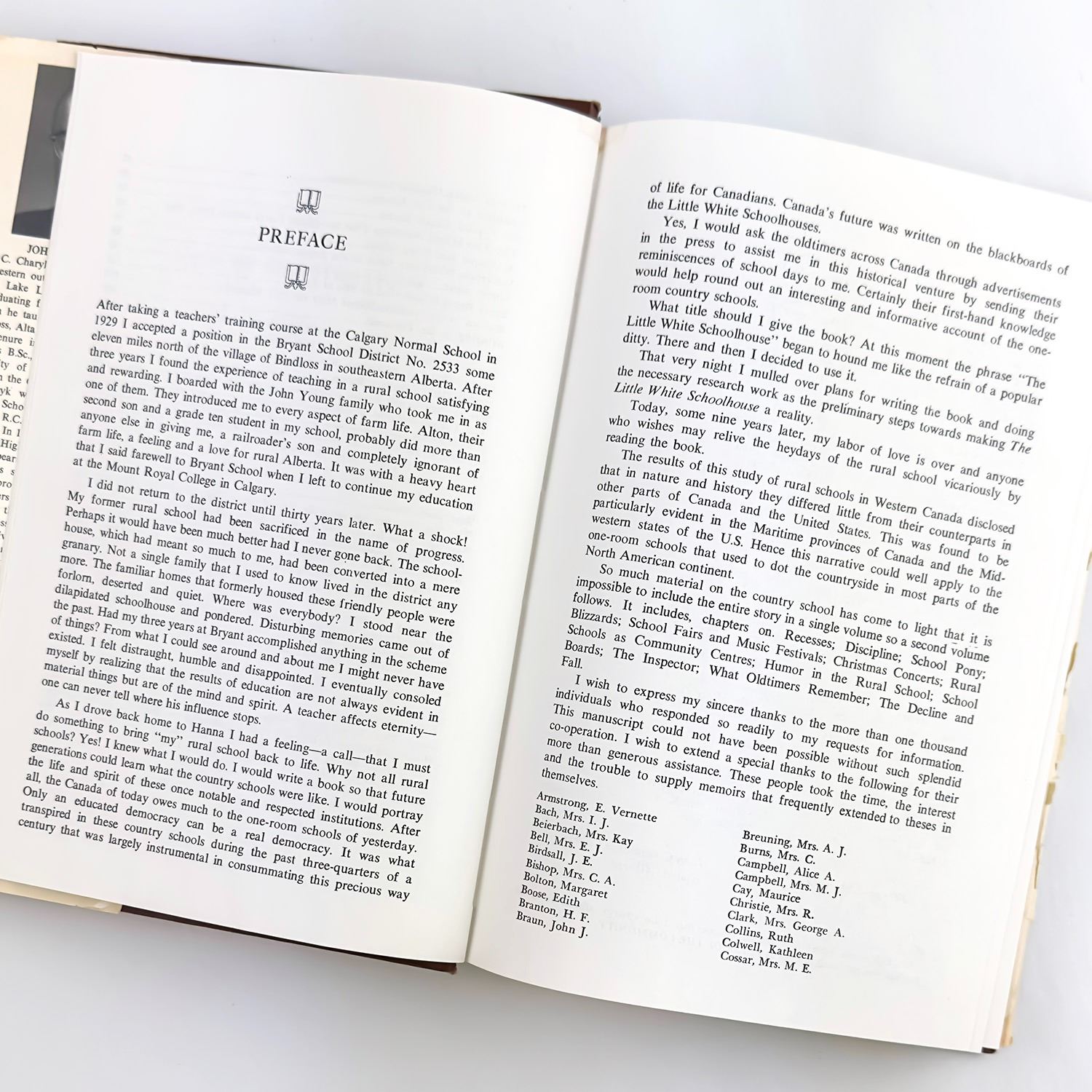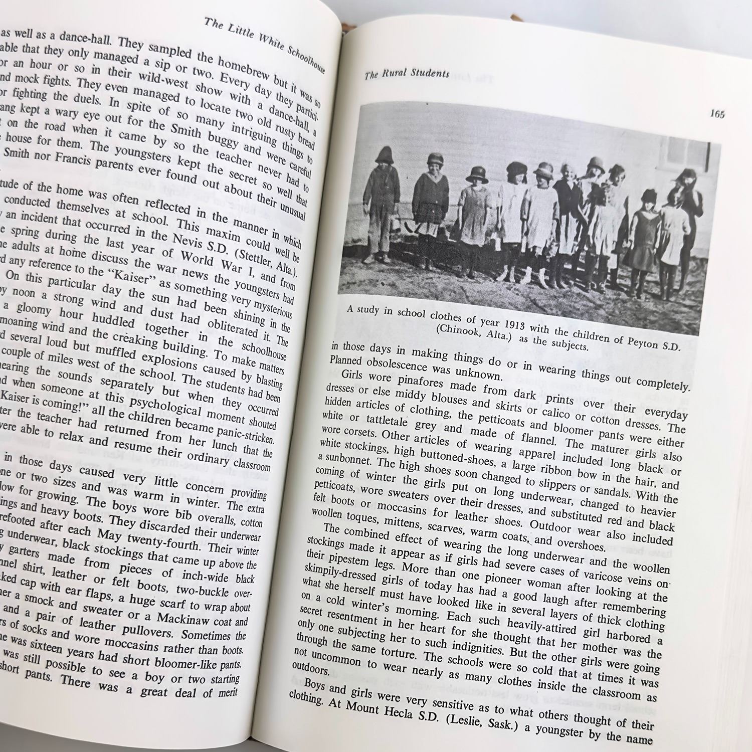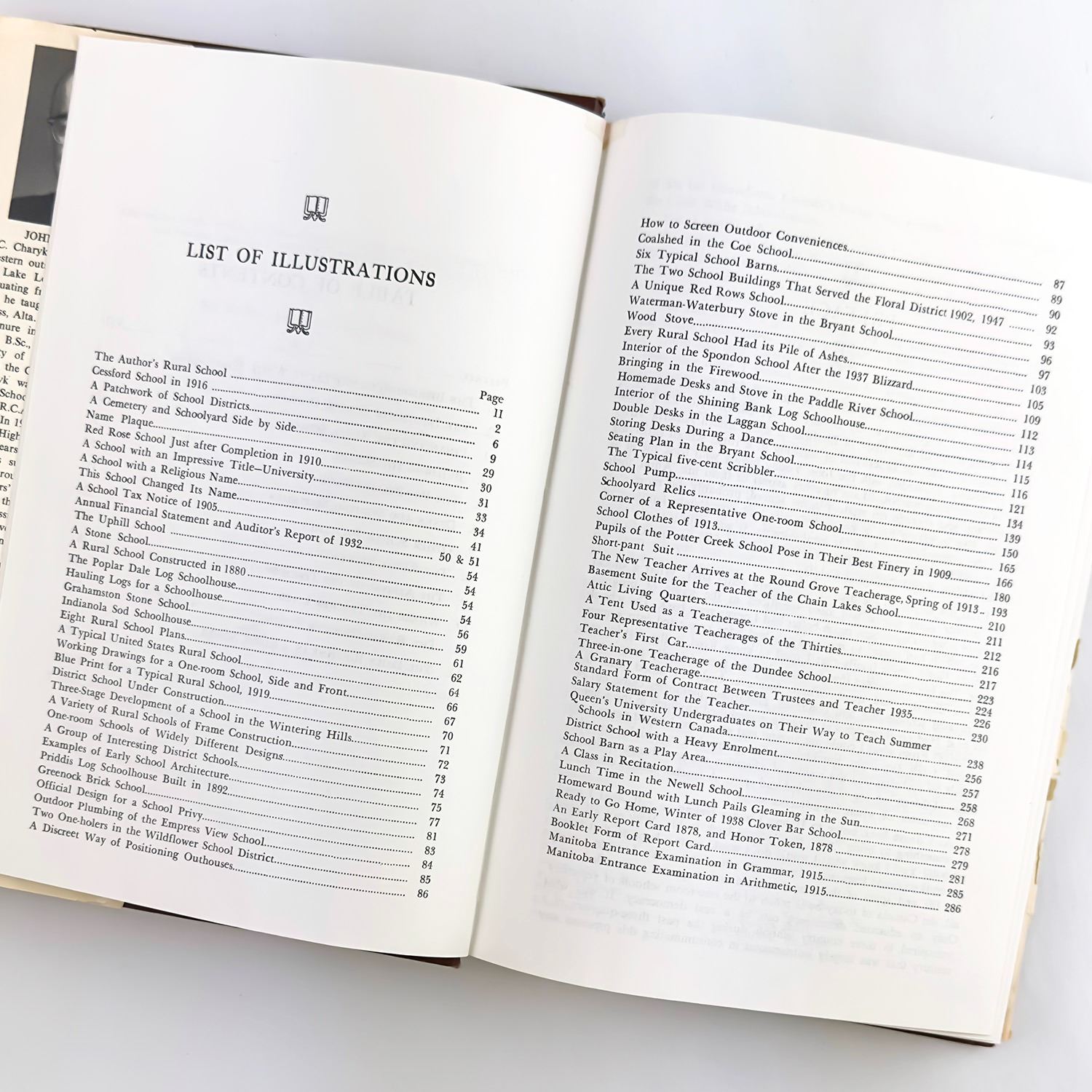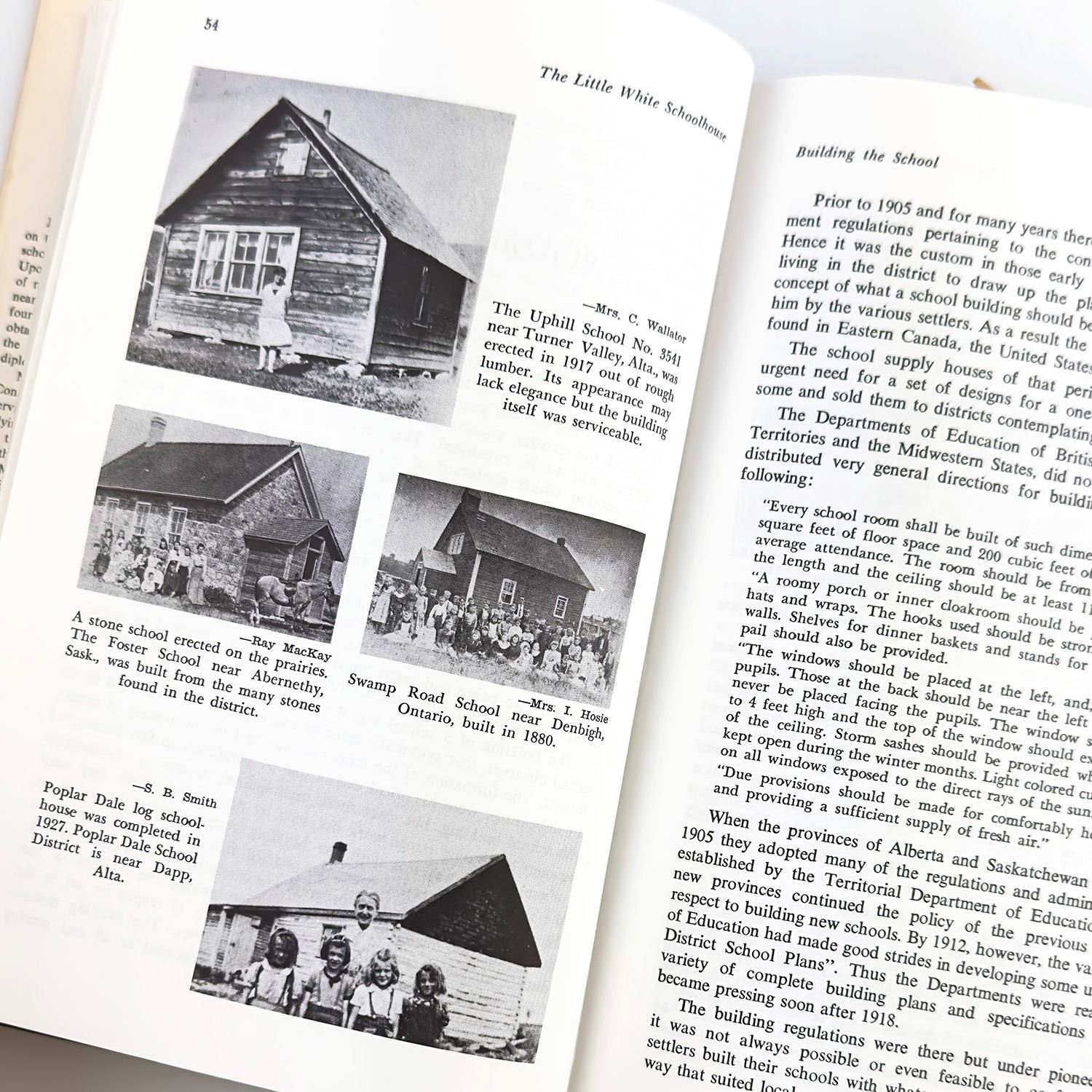 #8582 - VINTAGE HISTORY BOOK OF WHITE SCHOOL HOUSES IN ALBERTA, SASKATCHEWAN ETC. HARDCOVER WITH DUST JACKET - THE LITTLE WHITE SCHOOLHOUSE VOLUME 1 BY JOHN C. CHARYK. FOURTH PRINTING 1977 BY MODERN PRESS, SASKATOON, SASKATCHEWAN, CANADA - 302 PAGES. MEASURES: 6.25” X 9”
