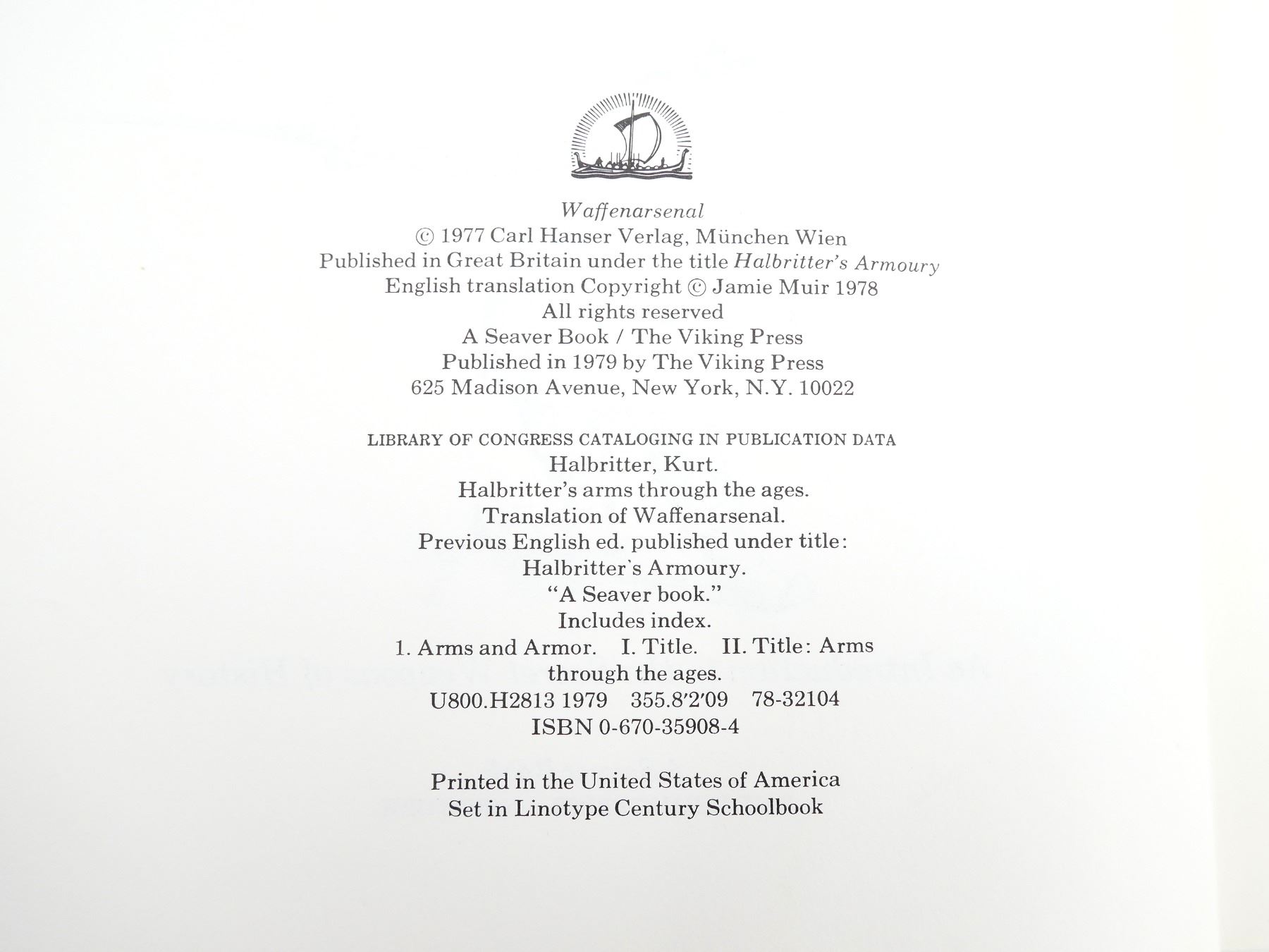 LOT INCLUDES; (1) "THE LURE OF ANTIQUE ARMS" BY MERRILL LINDSAY, SOFT COVER, ISBN: 0-88317-044-2 & "HALBRITTER'S ARMS THROUGH THE AGES" BOOK TRANSLATED BY JAMIE MUIR, HARD COVER, ISBN: 0-670-35908-4. SEE PHOTOS.