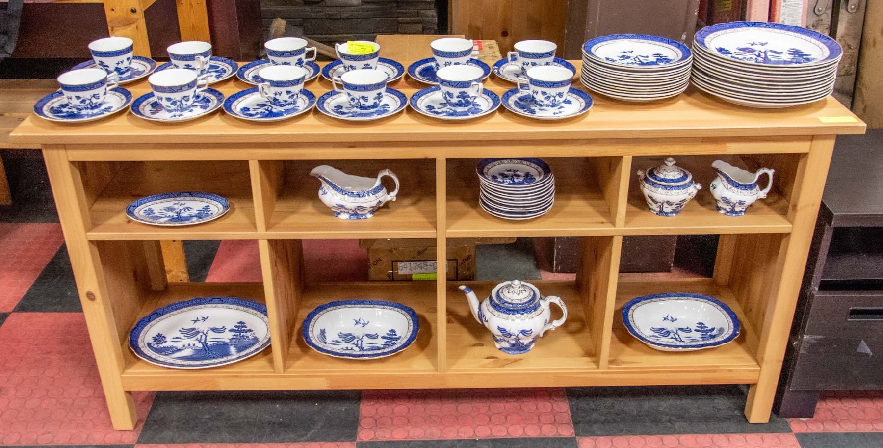 WILLOW" 12 PLACE SETTING OF THE MAJESTIC COLLECTION BOOTHS "BOOTHS REAL OLD WILLOW" INCLUDES 12 - 5 PIECE PLACE SETTINGS PLATES, CUPS & SAUCER. 1 MEAT PLATTER, 2 10" VEGETABLE BOWLS, 1 GRAVY BOWL, 1 TEA POT, + MORE