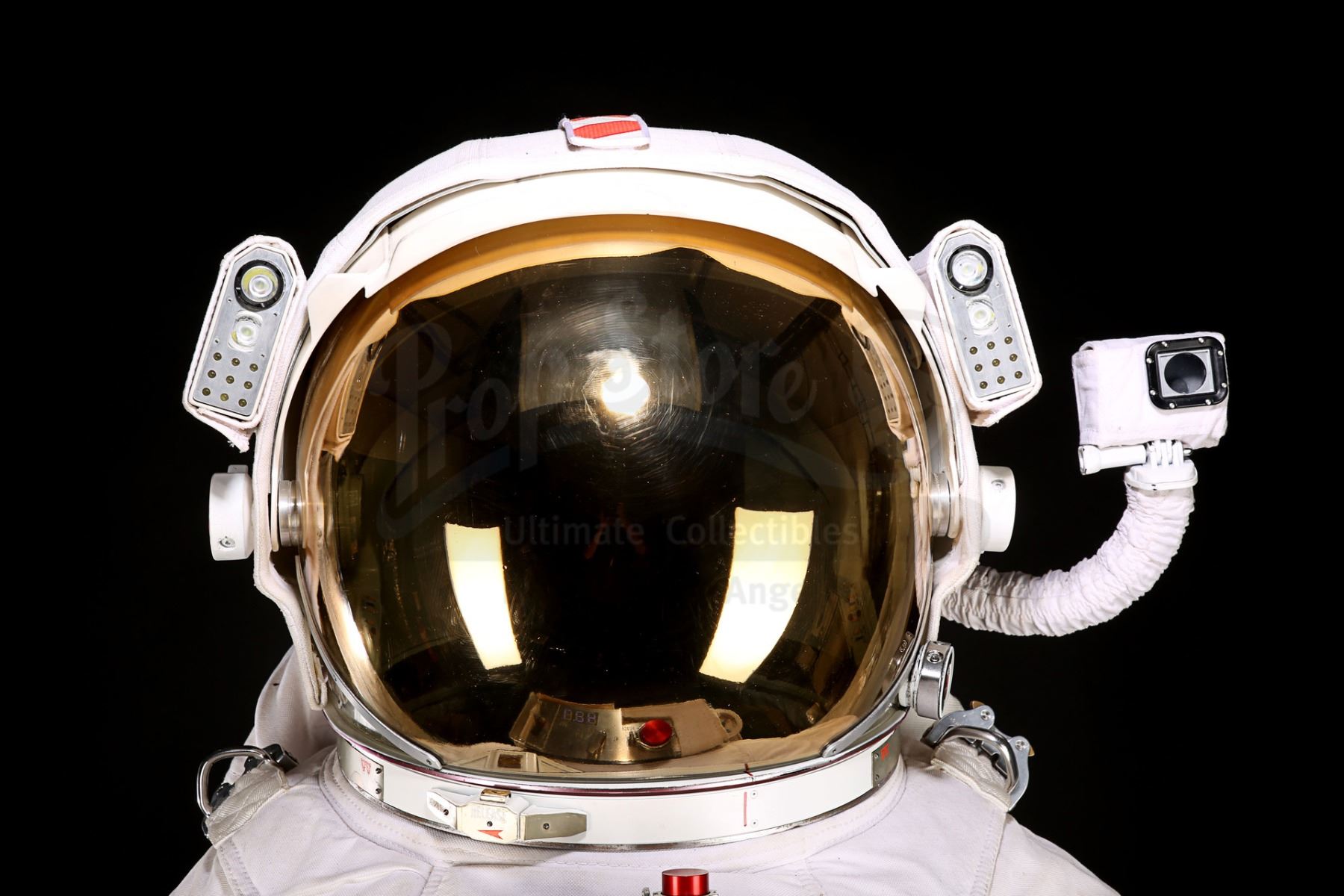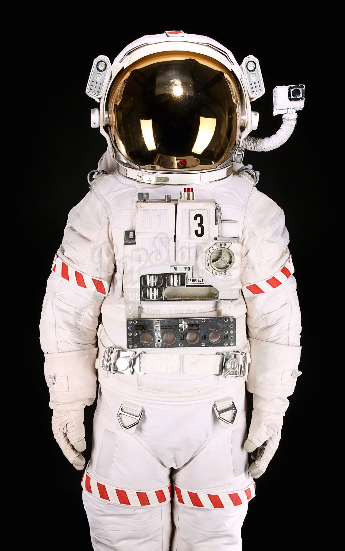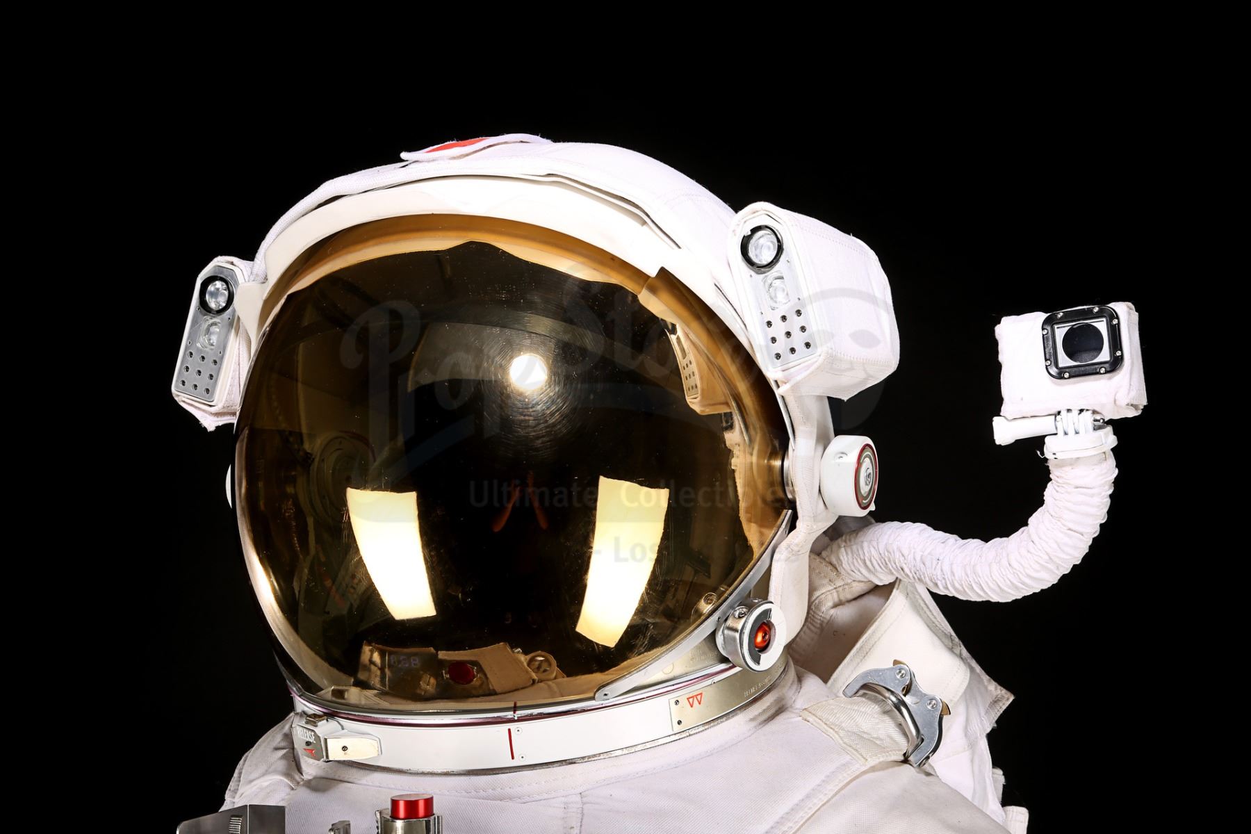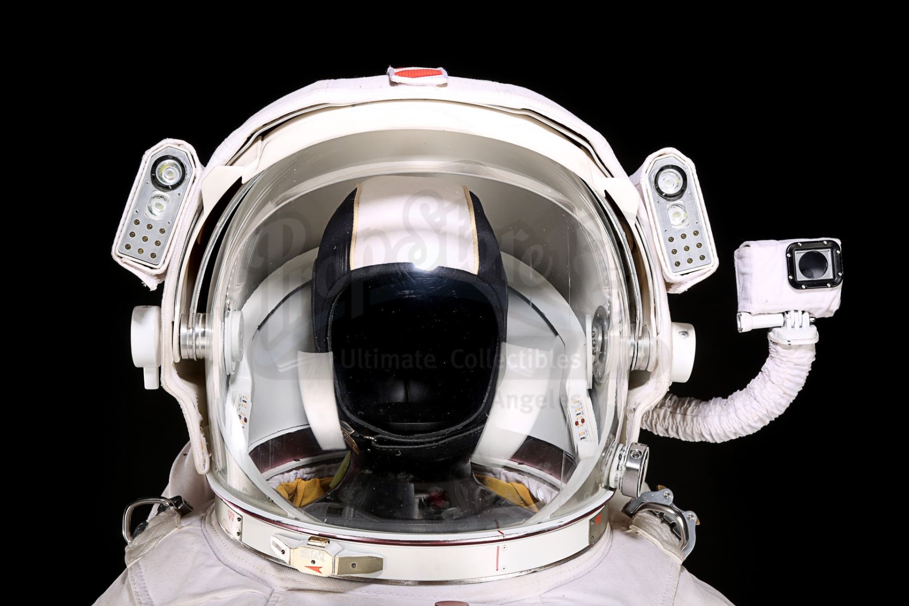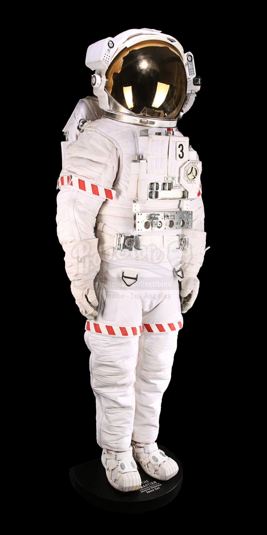 Melissa Lewis' (Jessica Chastain) EVA suit from Ridley Scott's sci-fi survival drama The Martian. Lewis wore her extra-vehicular activity (EVA) suit when operating the Manned Maneuvering Unit during the Hermes mission to rescue Mark Watney (Matt Damon) from Mars. The EVA costume was based on a version of a NASA suit used for moving outside the International Space Station, and created by costume designer Janty Yates, Scott's long-time collaborator. Yates and Scott have worked together on a number of sci-fi films, including Prometheus and Alien: Covenant.The suit is constructed primarily from a white synthetic material and comprises a helmet; a black-and-white skull cap; a torso with a backpack and GoPro camera housing attached; a pair of trousers; a set of gloves with rubber fingertip and palm detailing; and a pair of boots with rubber-sole crampons.