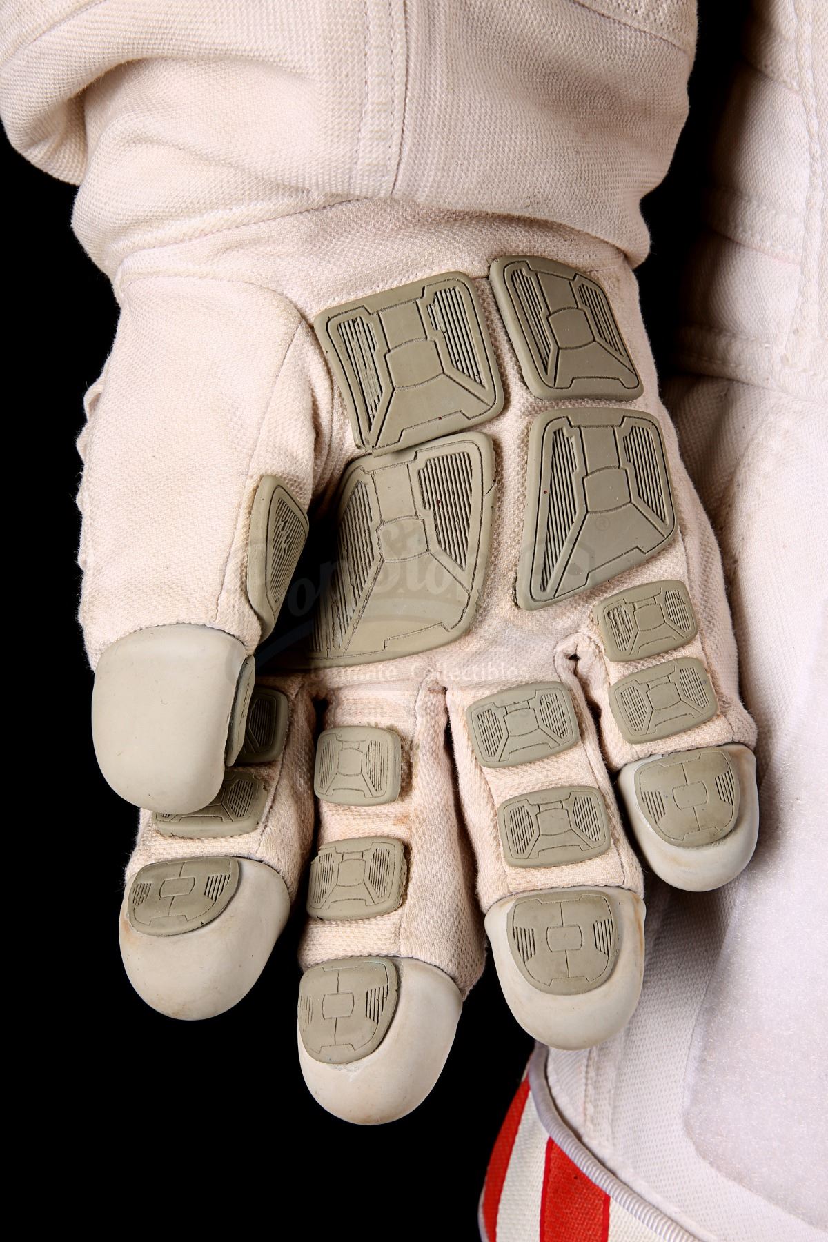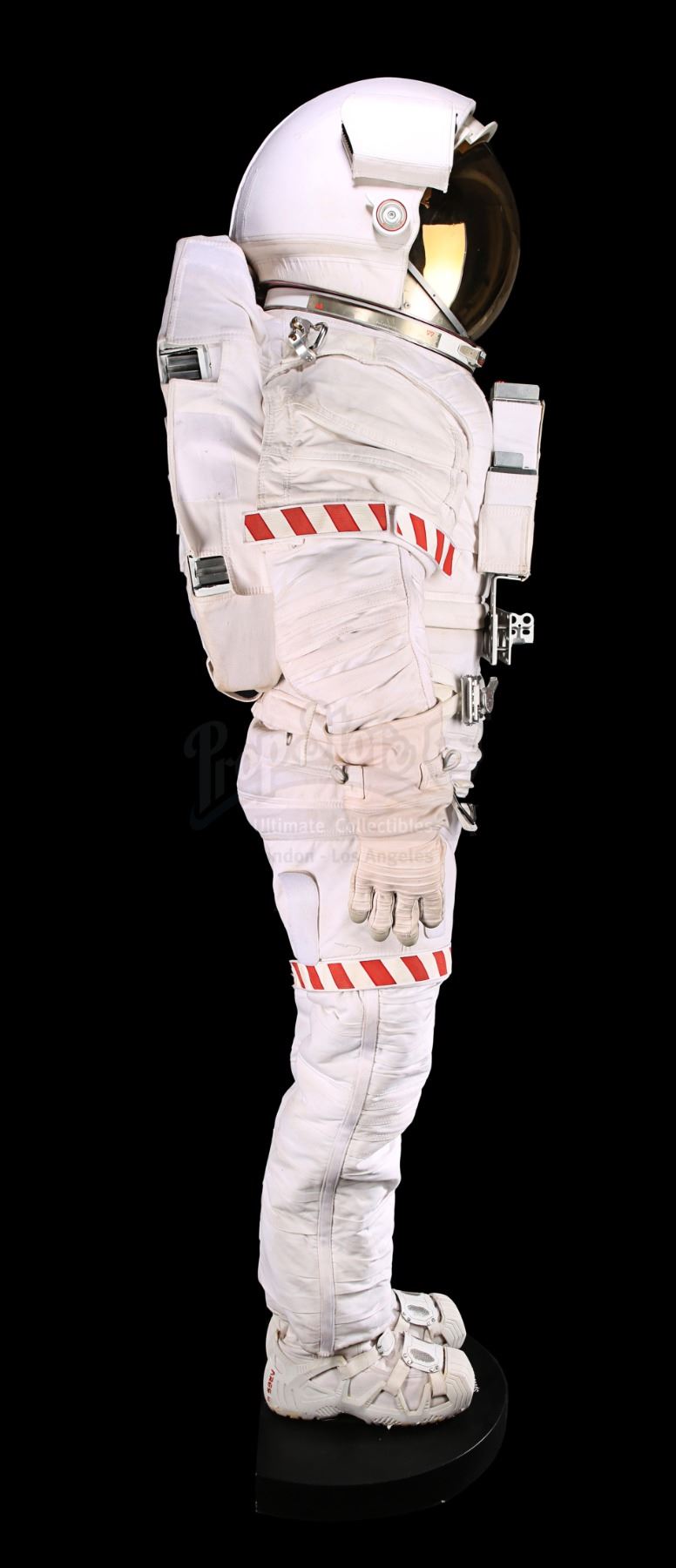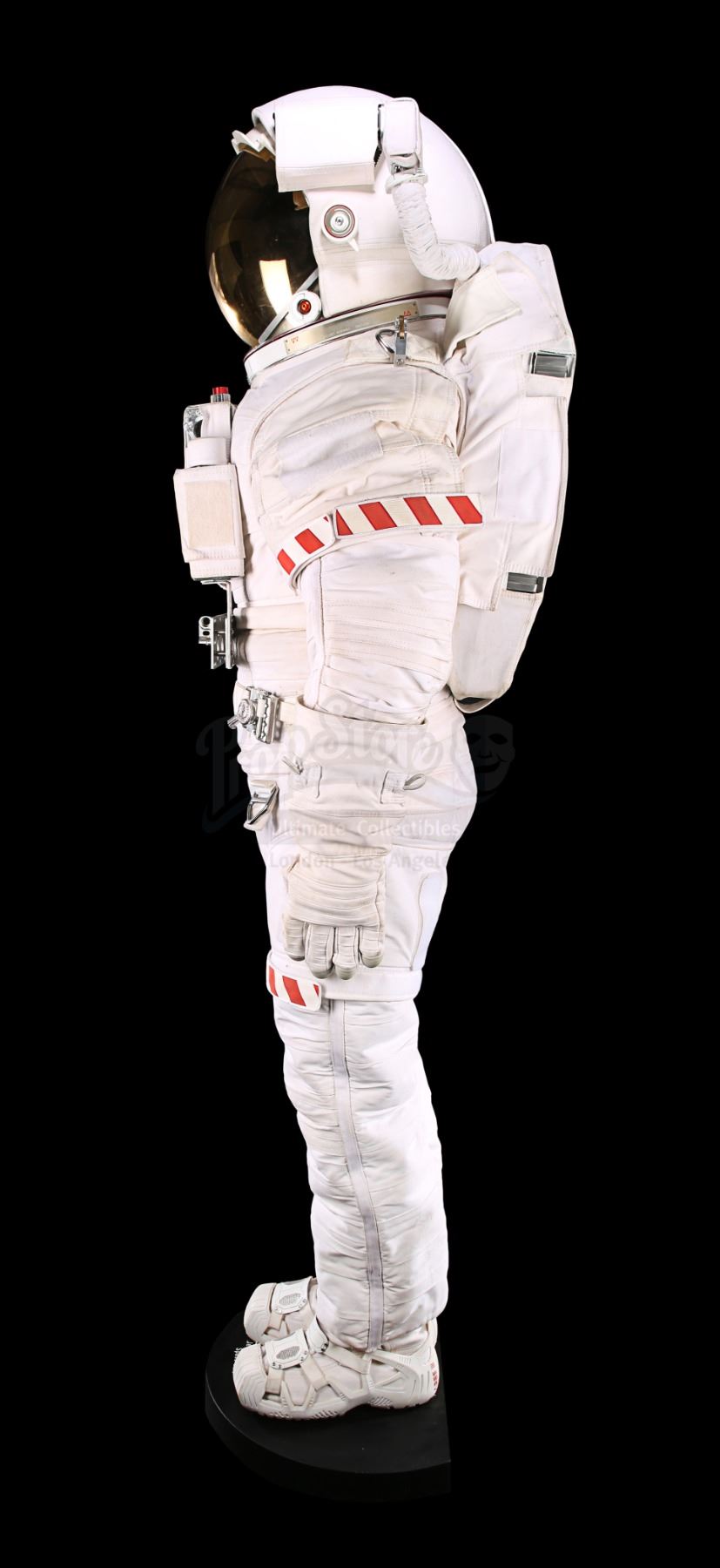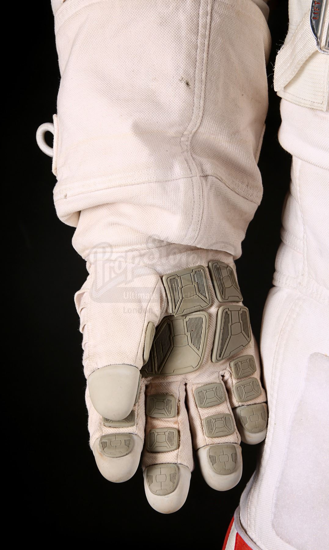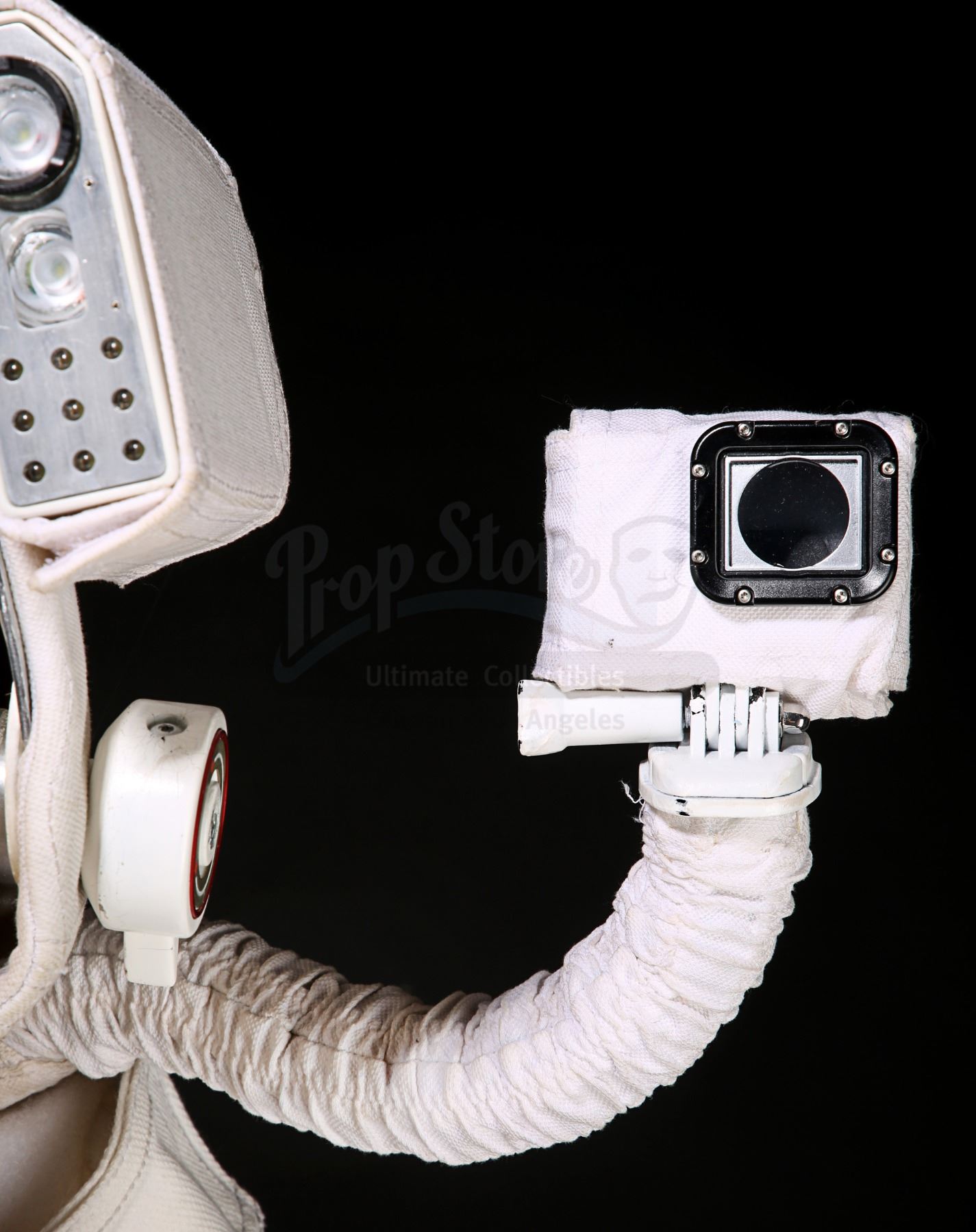 Melissa Lewis' (Jessica Chastain) EVA suit from Ridley Scott's sci-fi survival drama The Martian. Lewis wore her extra-vehicular activity (EVA) suit when operating the Manned Maneuvering Unit during the Hermes mission to rescue Mark Watney (Matt Damon) from Mars. The EVA costume was based on a version of a NASA suit used for moving outside the International Space Station, and created by costume designer Janty Yates, Scott's long-time collaborator. Yates and Scott have worked together on a number of sci-fi films, including Prometheus and Alien: Covenant.The suit is constructed primarily from a white synthetic material and comprises a helmet; a black-and-white skull cap; a torso with a backpack and GoPro camera housing attached; a pair of trousers; a set of gloves with rubber fingertip and palm detailing; and a pair of boots with rubber-sole crampons.