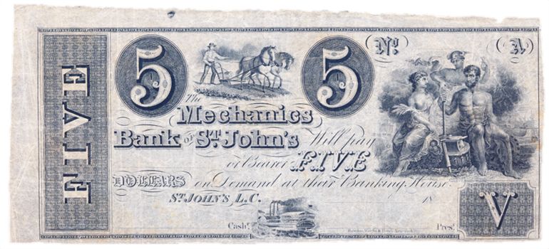 THE MECHANICS BANK OF ST. JOHNS. $5.00. 18-(1837). CH-440-10-02R. A Remainder. PMG graded Very Fine-20.