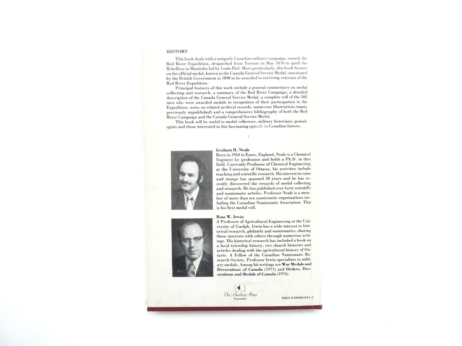 "THE MEDAL ROLL OF THE RED RIVER CAMPAIGN OF 1870 IN CANADA" BOOK