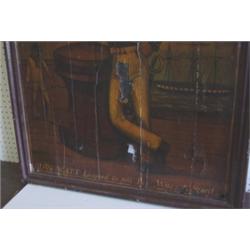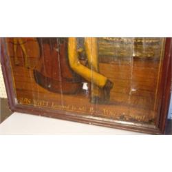 STORE SIGN TITLED "THE MIDSHIPMAN". Features sailor on dock. Reads "The Midshipman-Alan Watt Licensed to sell Beer, Wine, & Spirits". Sign is damaged and needs restoration. 32.75" x 41.5"