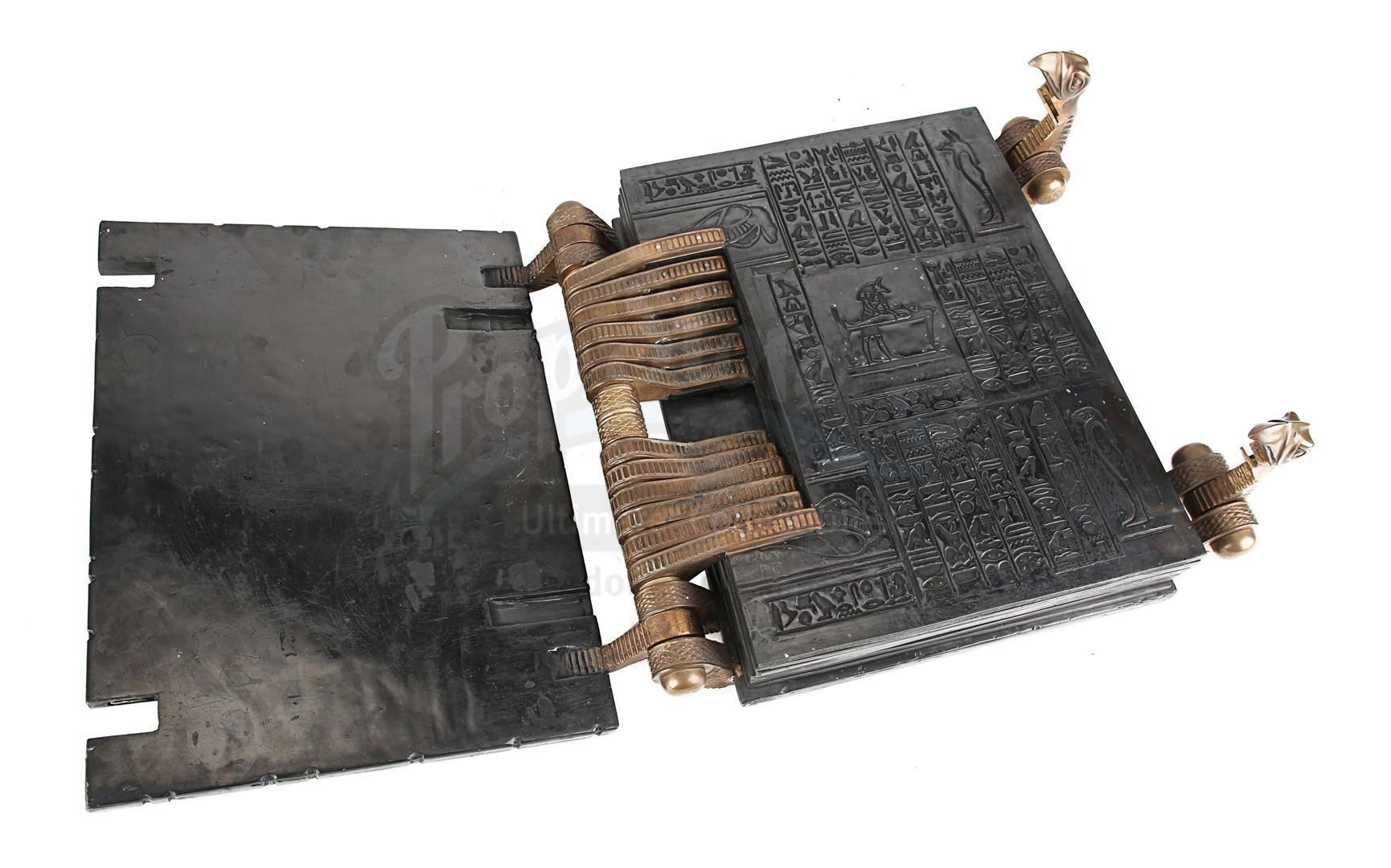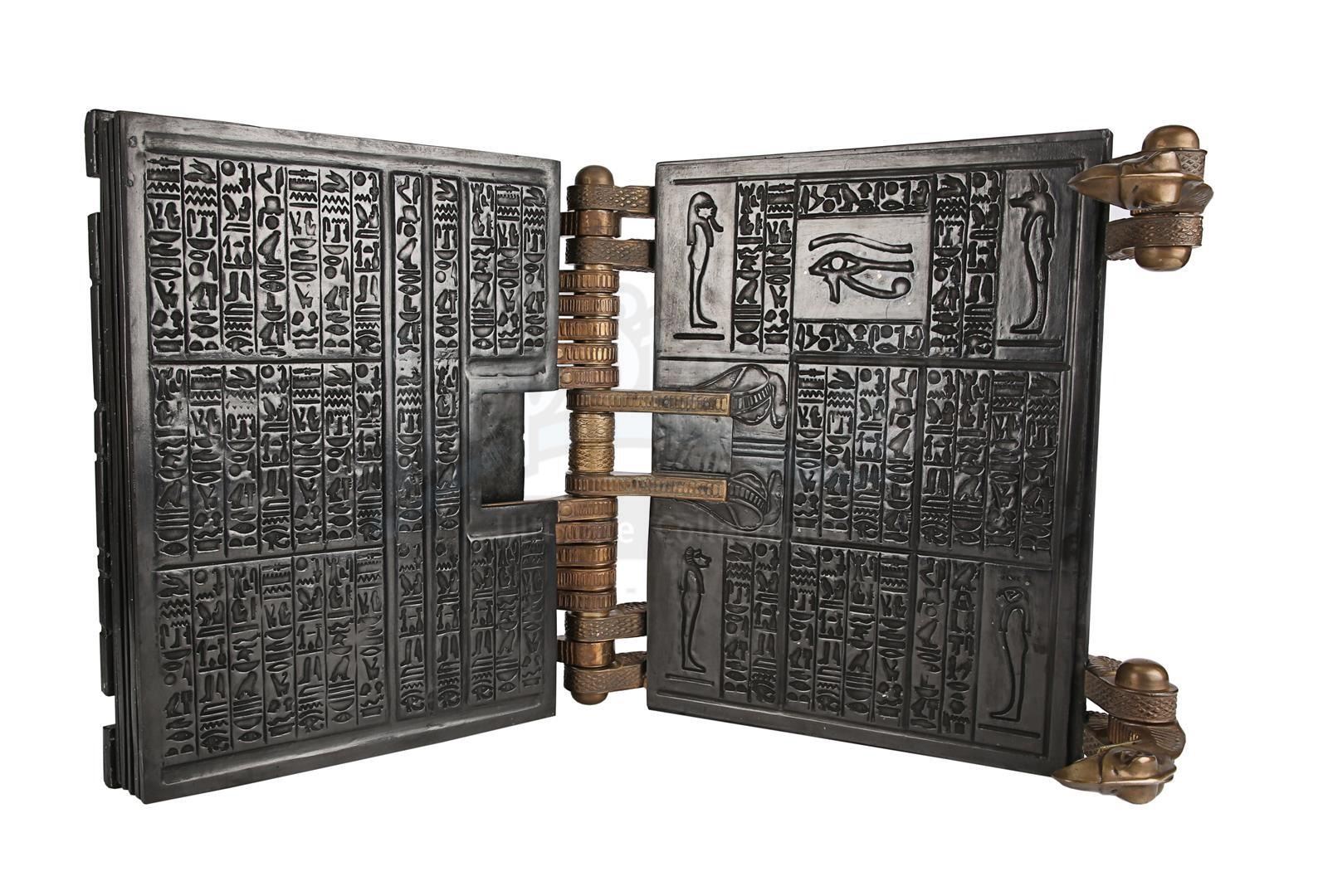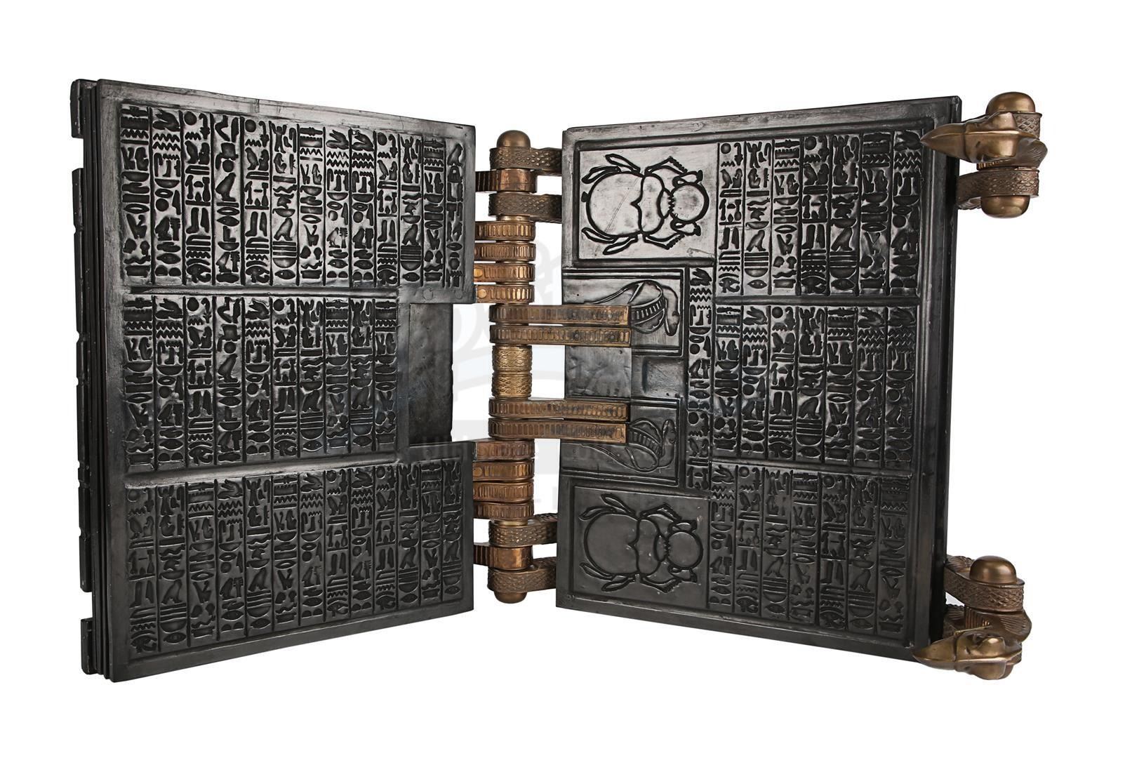 A functional hero Book of the Dead from Stephen Sommers' action adventure The Mummy. The Book of the Dead was one of two prominent Ancient Egyptian artefacts to feature in the film, and was first discovered in a chest located at the Statue of Anubis by a group of American treasure hunters. Evelyn Carnahan (Rachel Weisz) and Rick O'Connell (Brendan Fraser) accidentally used the book to raise the ancient priest Imhotep (Arnold Vosloo) from the grave.