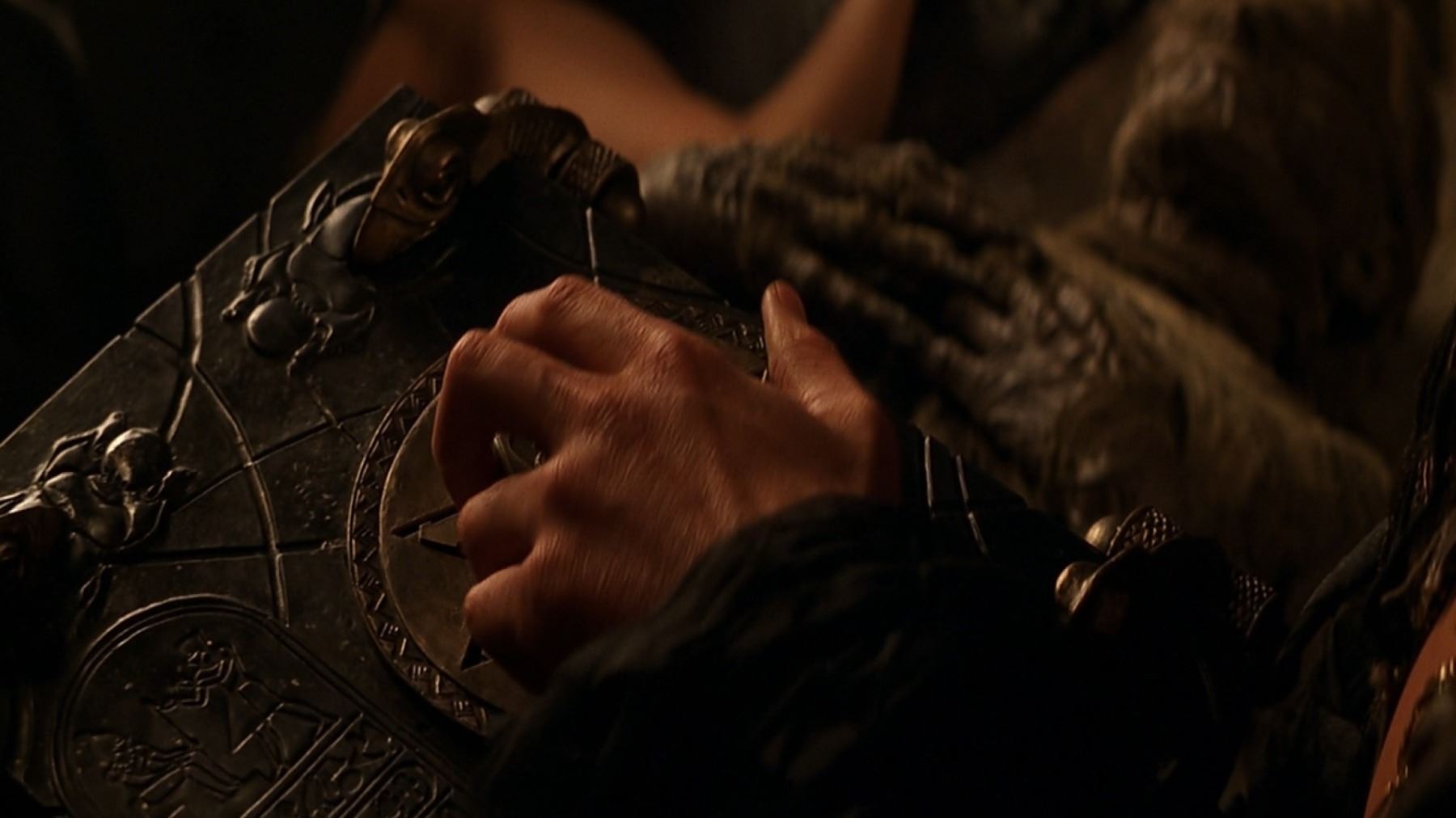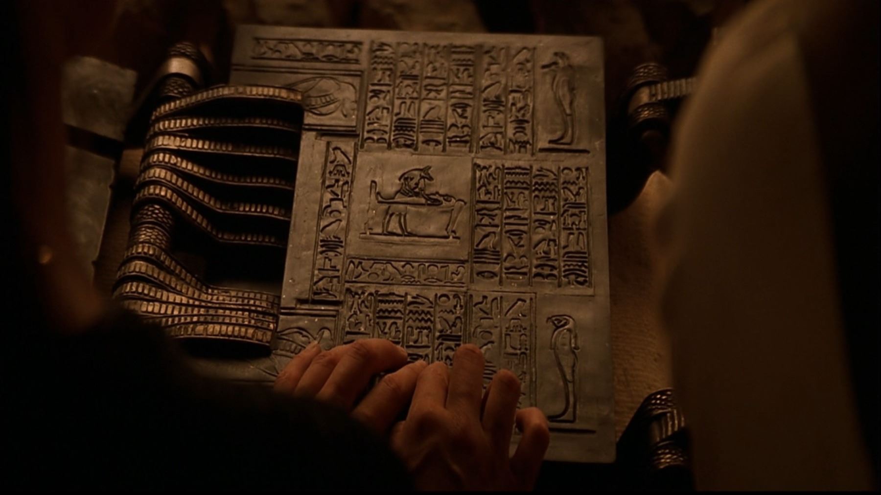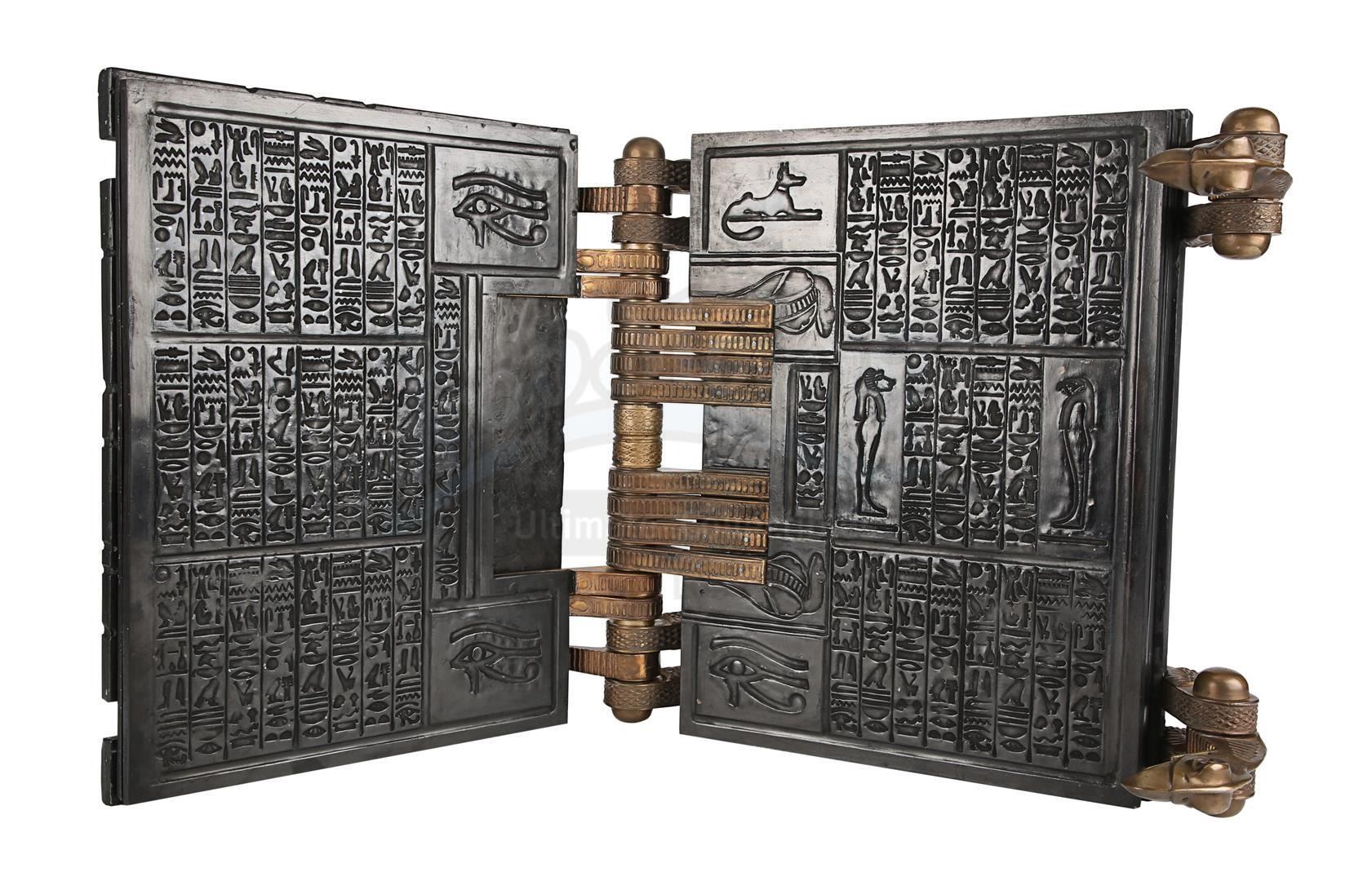 A functional hero Book of the Dead from Stephen Sommers' action adventure The Mummy. The Book of the Dead was one of two prominent Ancient Egyptian artefacts to feature in the film, and was first discovered in a chest located at the Statue of Anubis by a group of American treasure hunters. Evelyn Carnahan (Rachel Weisz) and Rick O'Connell (Brendan Fraser) accidentally used the book to raise the ancient priest Imhotep (Arnold Vosloo) from the grave.