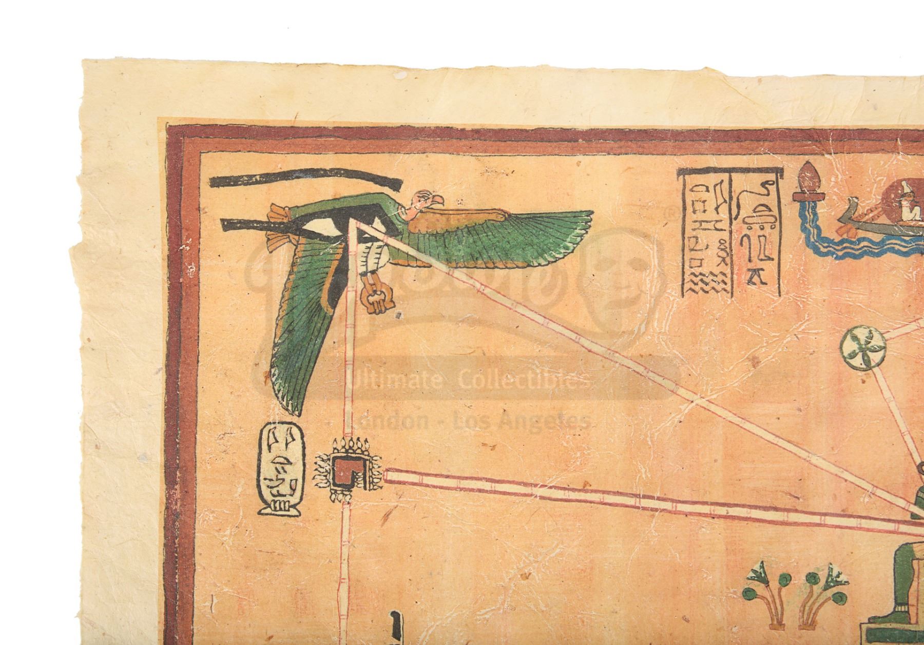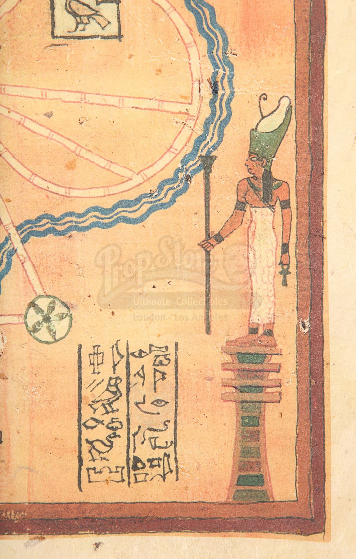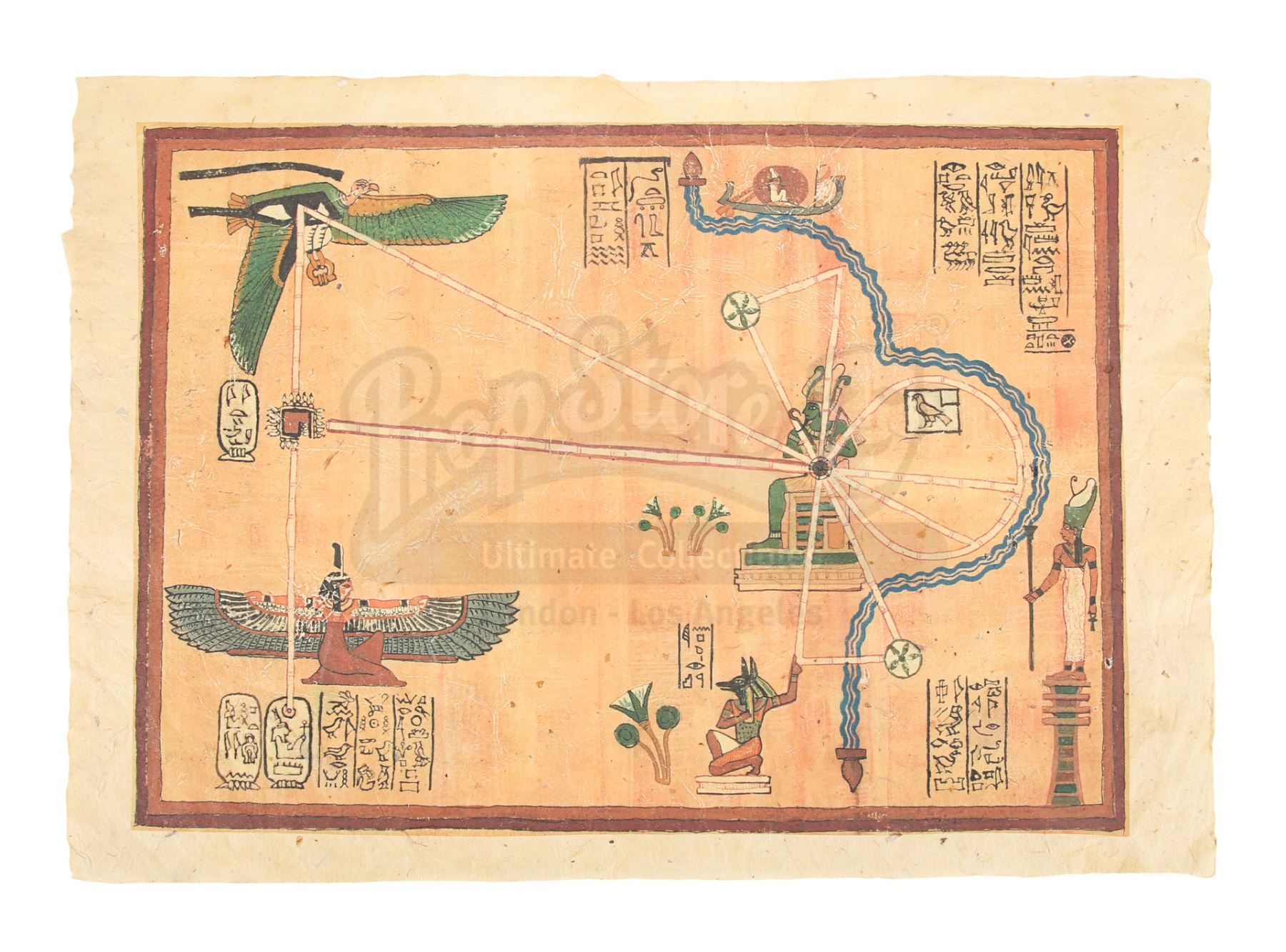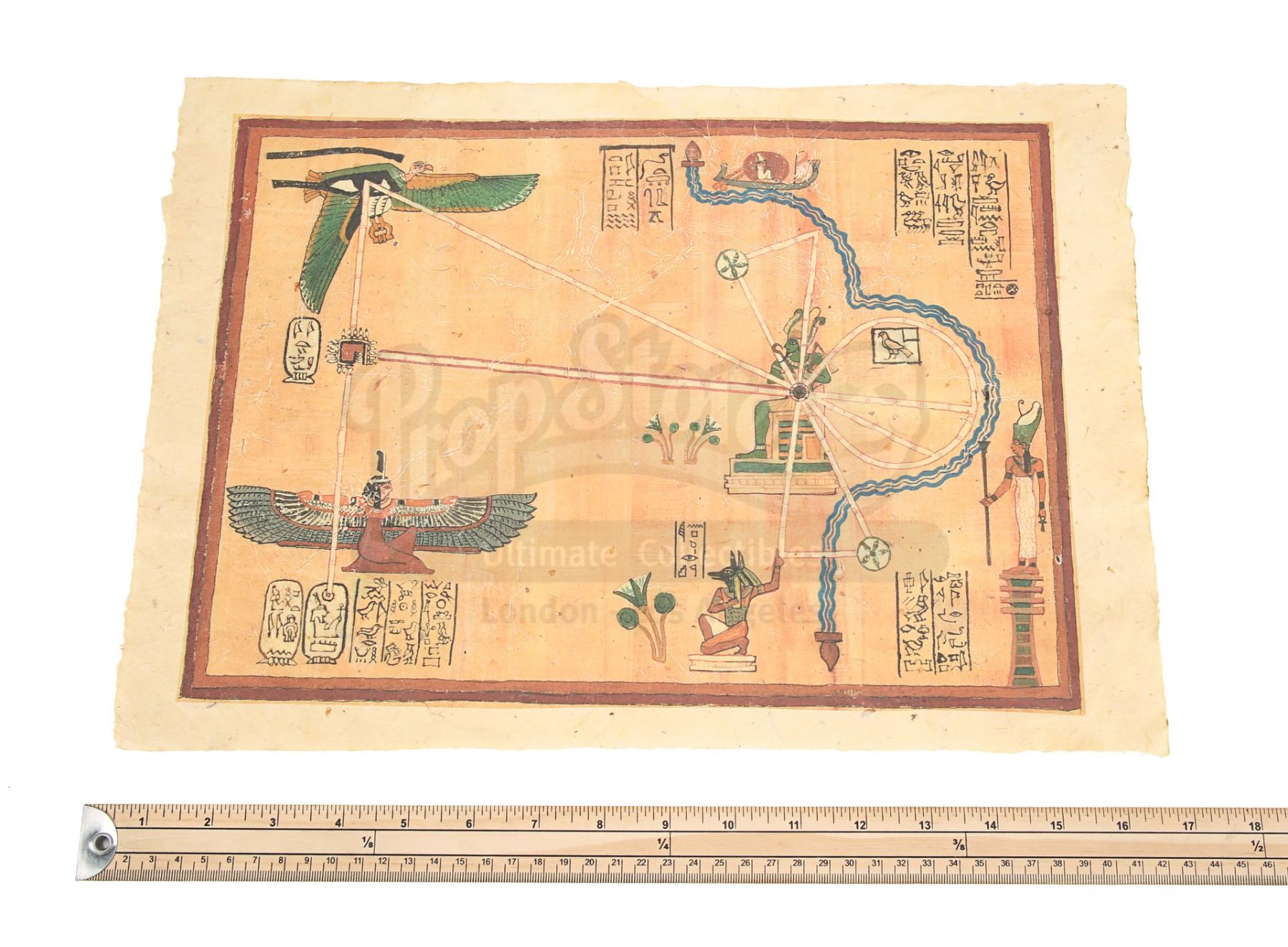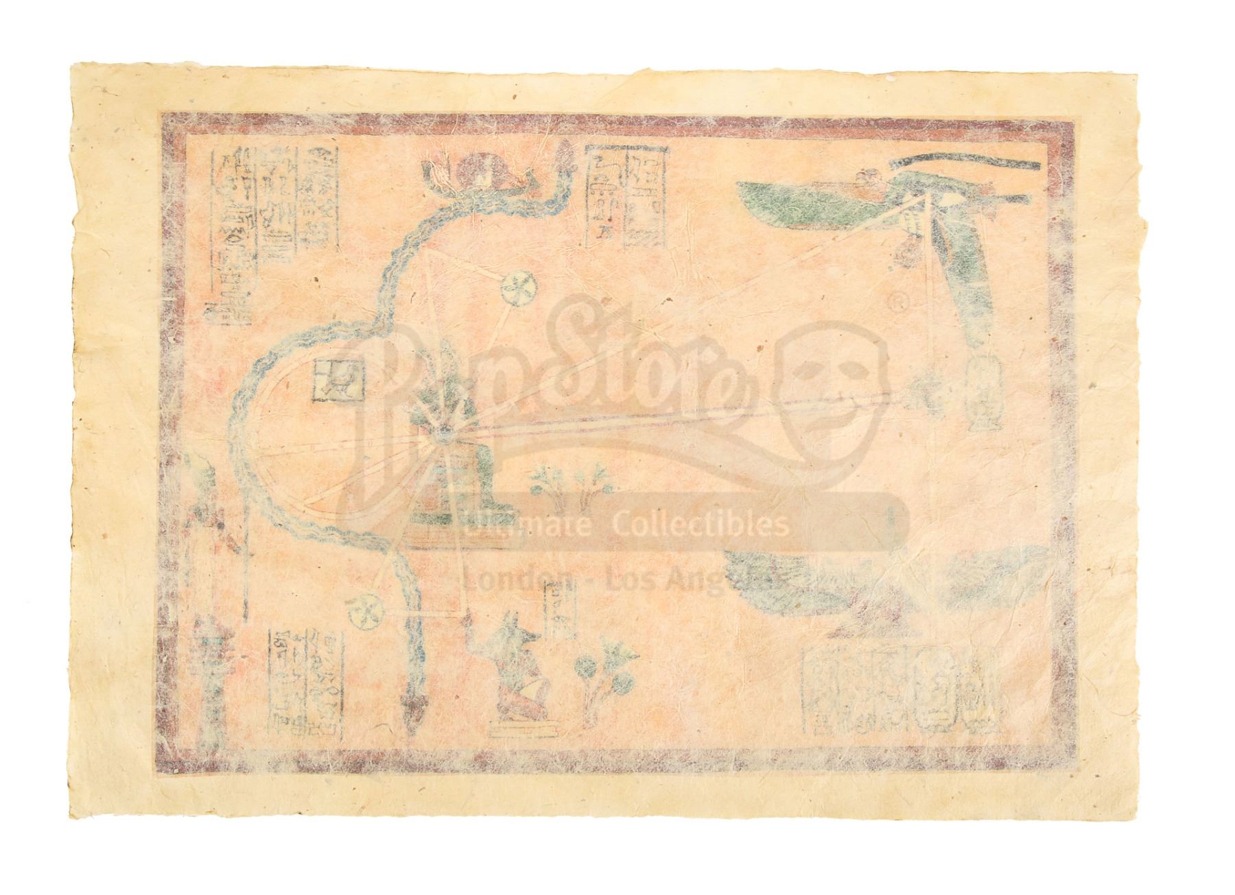 A Hamunaptra map from Stephen Sommers' fantasy adventure The Mummy. Evelyn (Rachel Weisz) and Jonathan (John Hannah) found the map to Hamunaptra, the lost "City of the Dead", inside the Book of the Dead key. The map was burned when their river boat was attacked by the Medjai.
