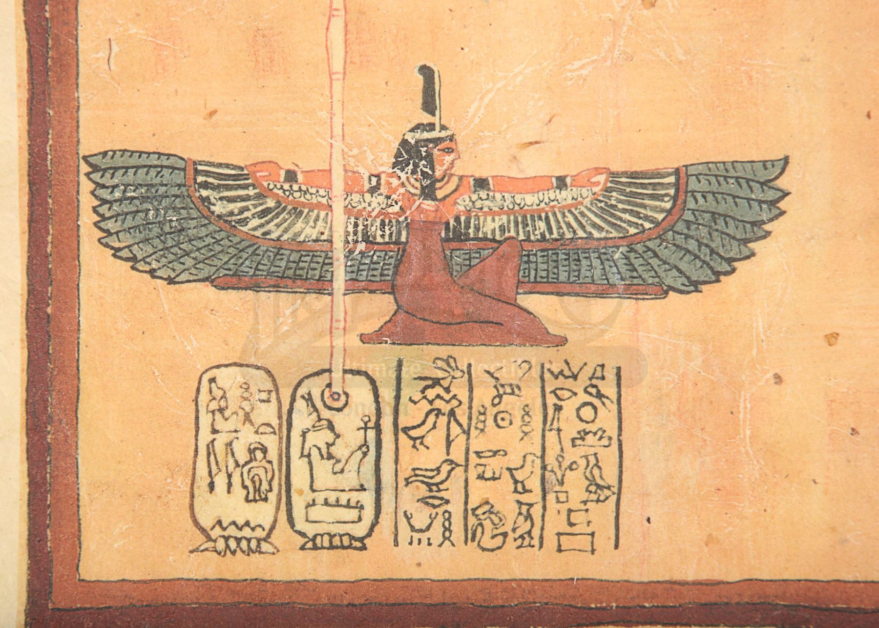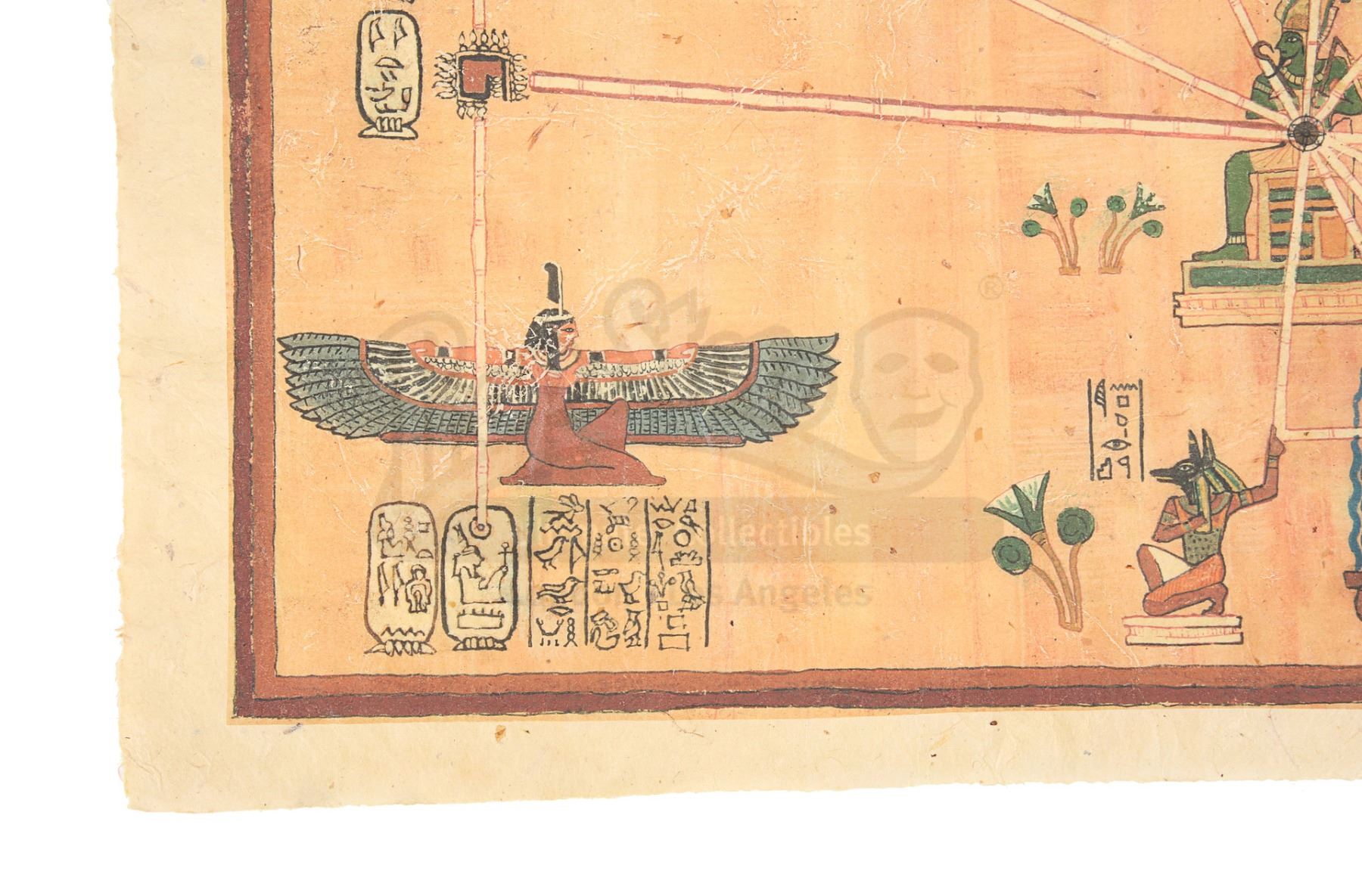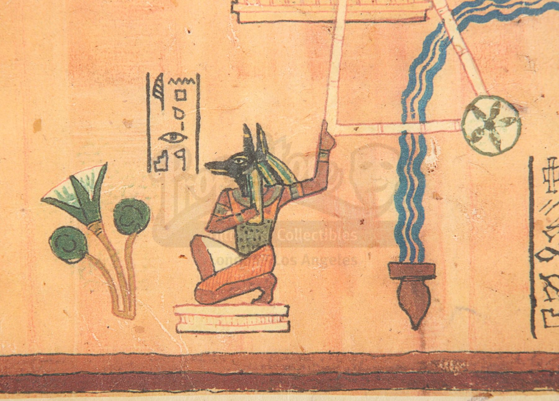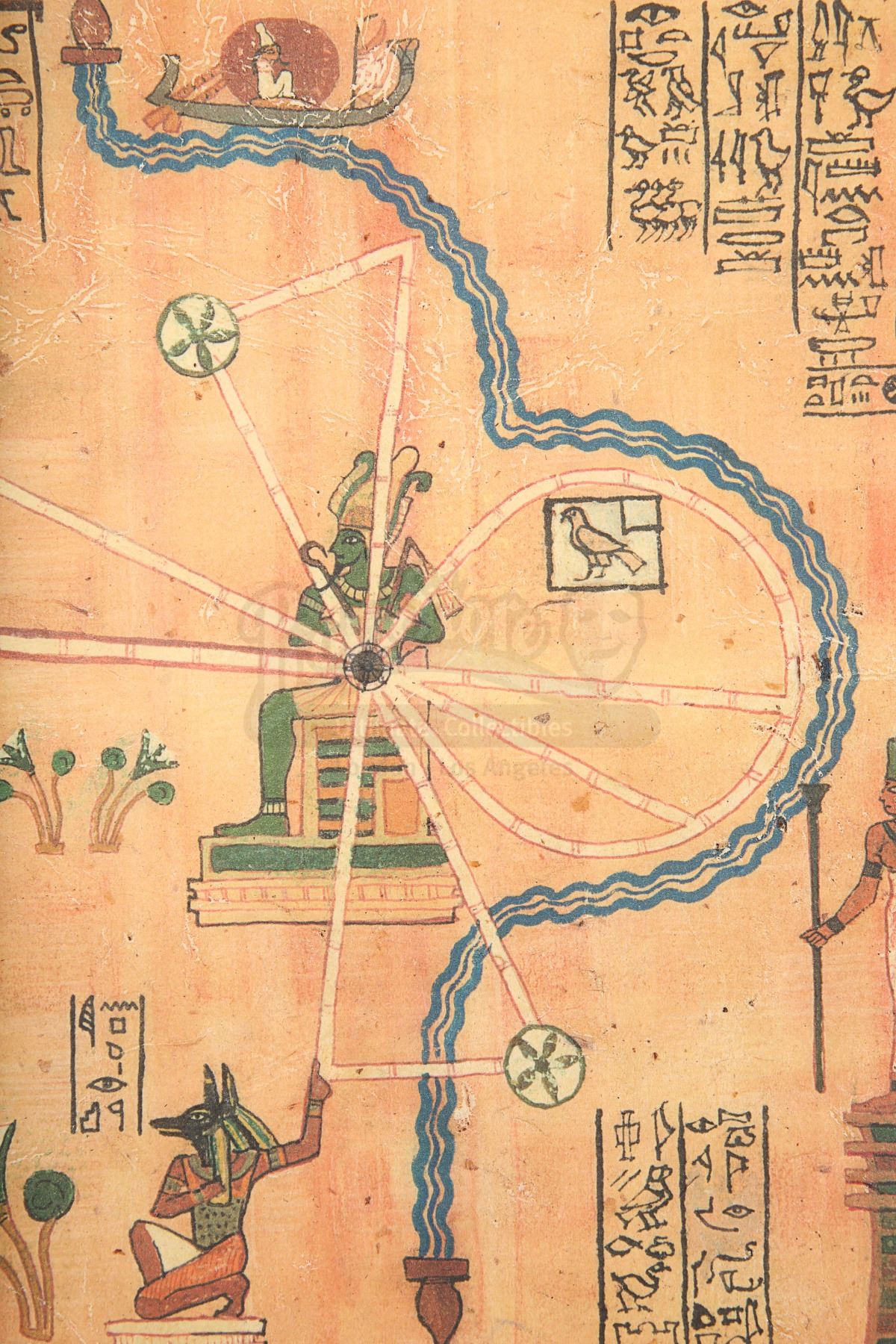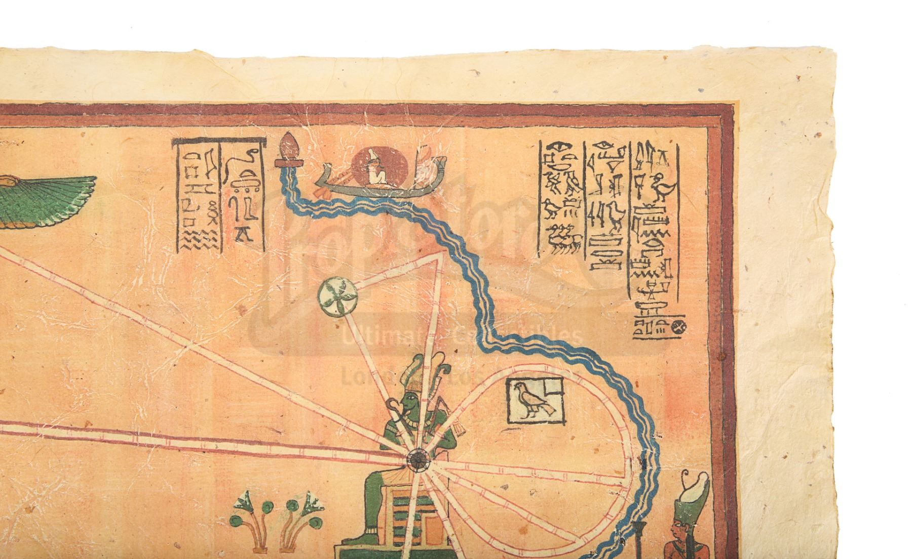 A Hamunaptra map from Stephen Sommers' fantasy adventure The Mummy. Evelyn (Rachel Weisz) and Jonathan (John Hannah) found the map to Hamunaptra, the lost "City of the Dead", inside the Book of the Dead key. The map was burned when their river boat was attacked by the Medjai.