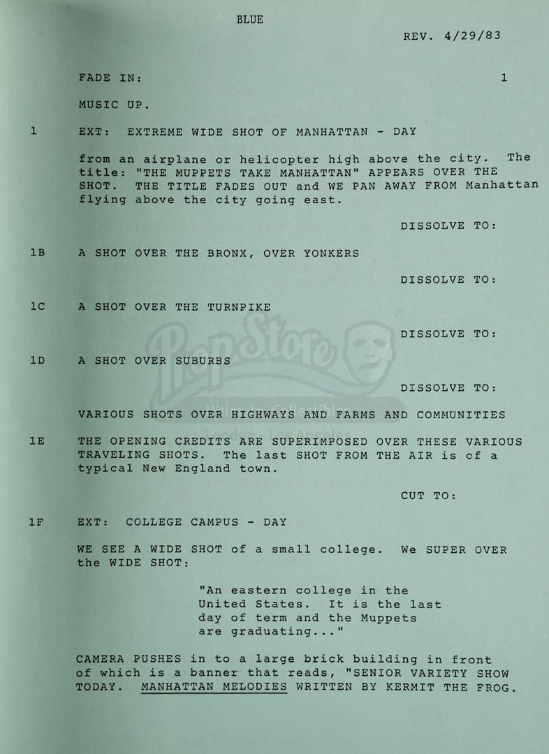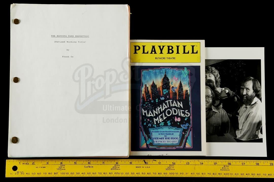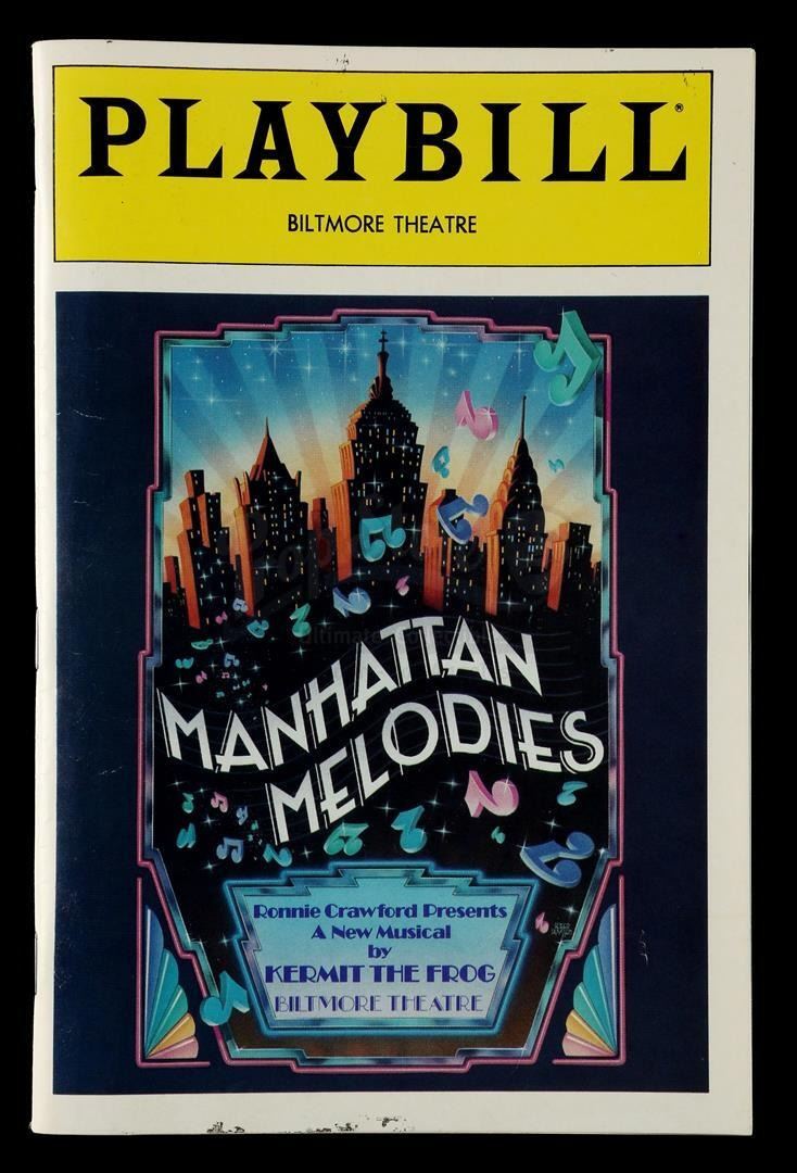 A "Manhattan Melodies" playbill with a production script and promo photo from Frank Oz's musical comedy The Muppets Take Manhattan. Playbills were distributed at the Broadway premiere of the Muppets' musical, "Manhattan Melodies".