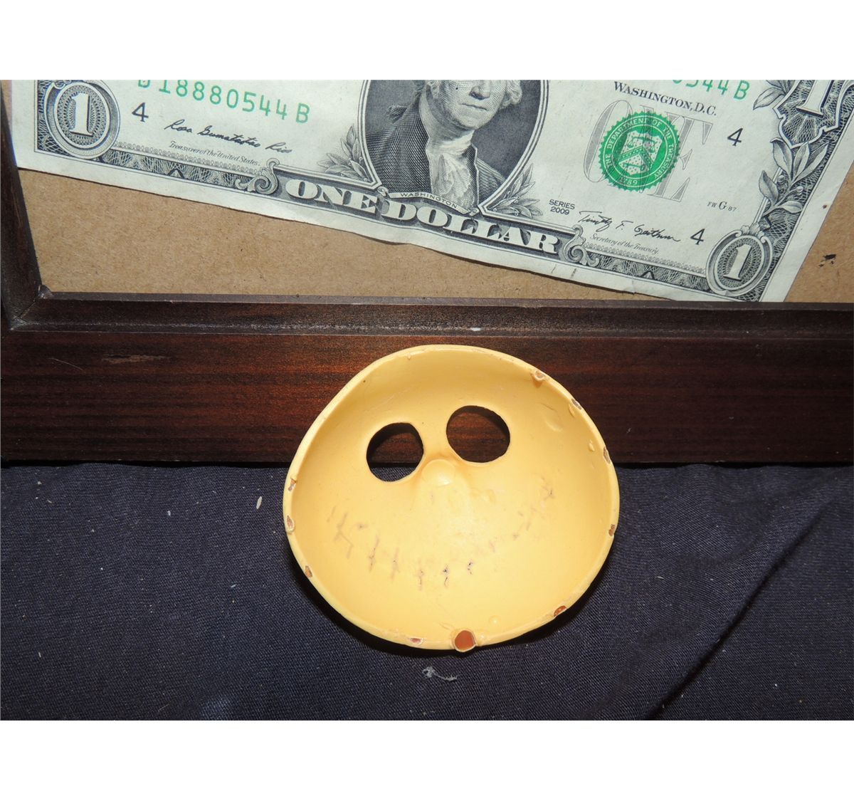 This is a production made Barrel Halloween mask from THE NIGHTMARE BEFORE CHRISTMAS.