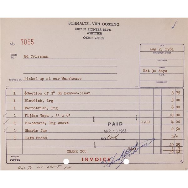 (1960s) An OA creation as part of their full offering to clients wishing to leave no stone unturned in regard to customized detail. 4.5"x2.25&q...