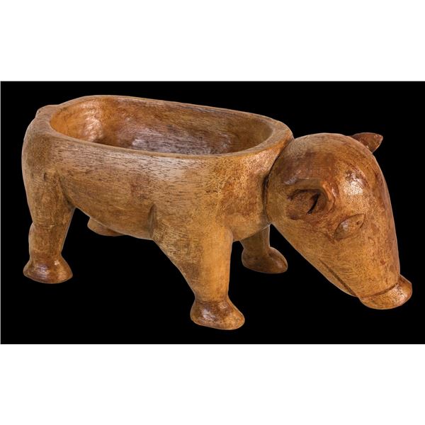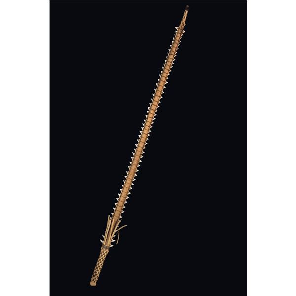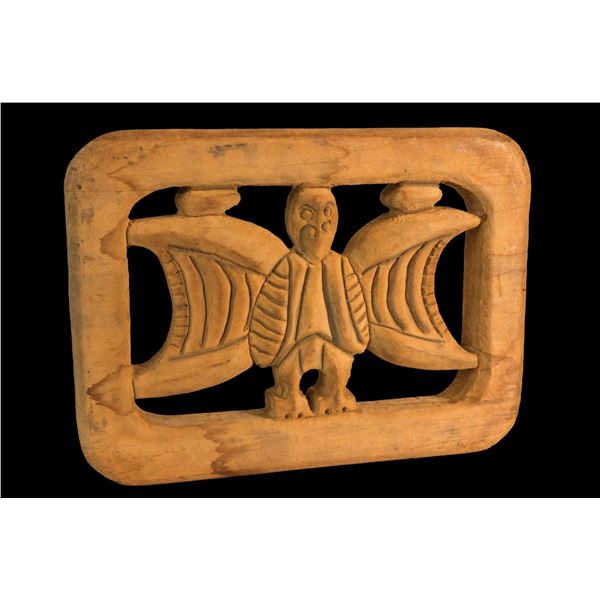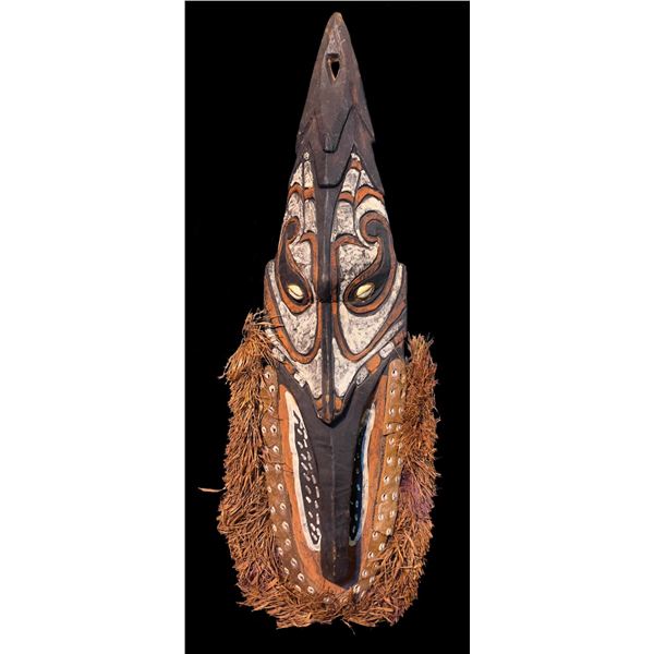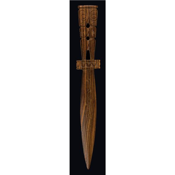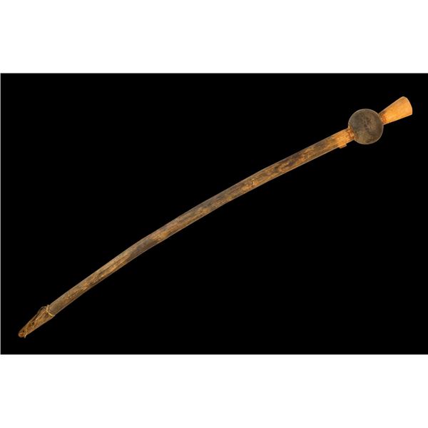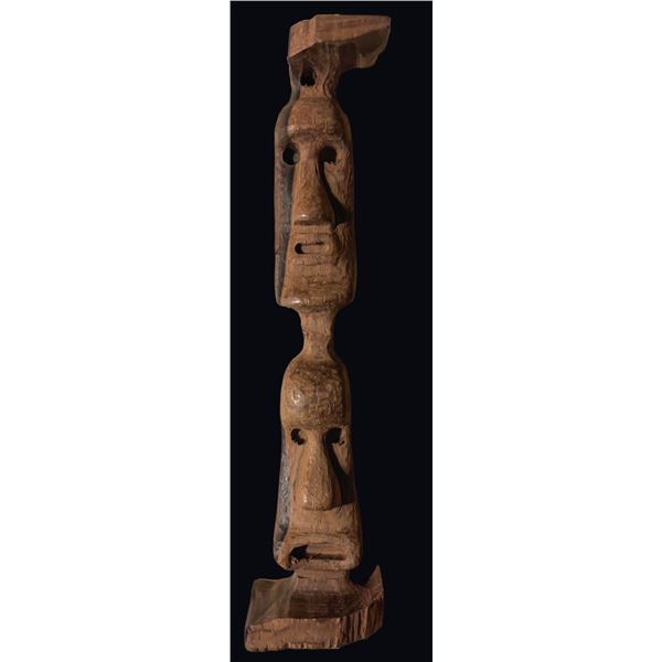 (Mid-20th Century) Vigorously carved in traditional motifs with heart shaped ancestor faces above and below the handle. Retains most of its original p