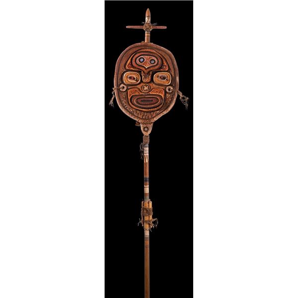 (1970s) A specialty of LeRoy Schmaltz, this double sided carved sea bird is accented with native design carving and painting. This particular carving