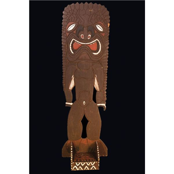 (Mid-20th Century) Middle Sepik River Hook Figure. Top of the head is pierced for a suspension cord. Hands resting on the abdomen with detailed curvin