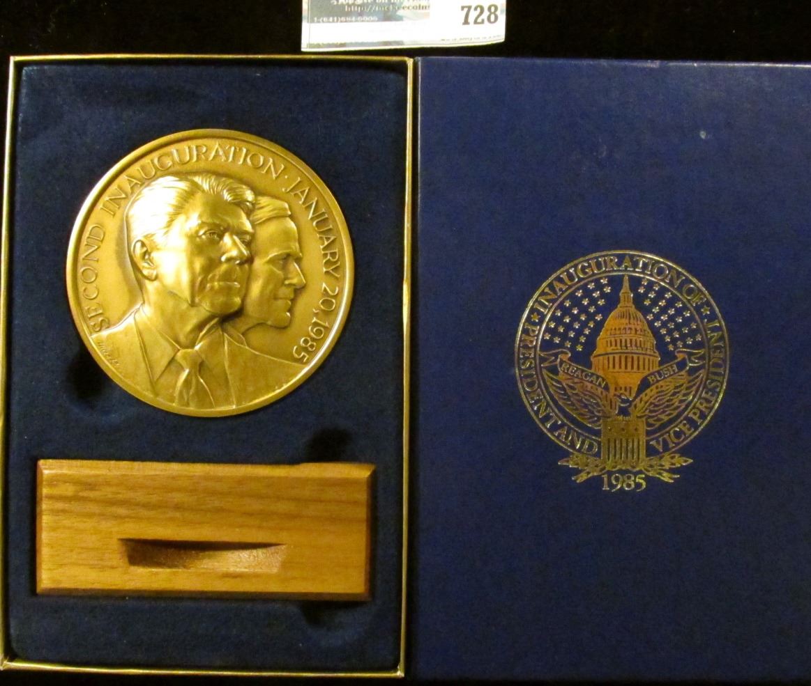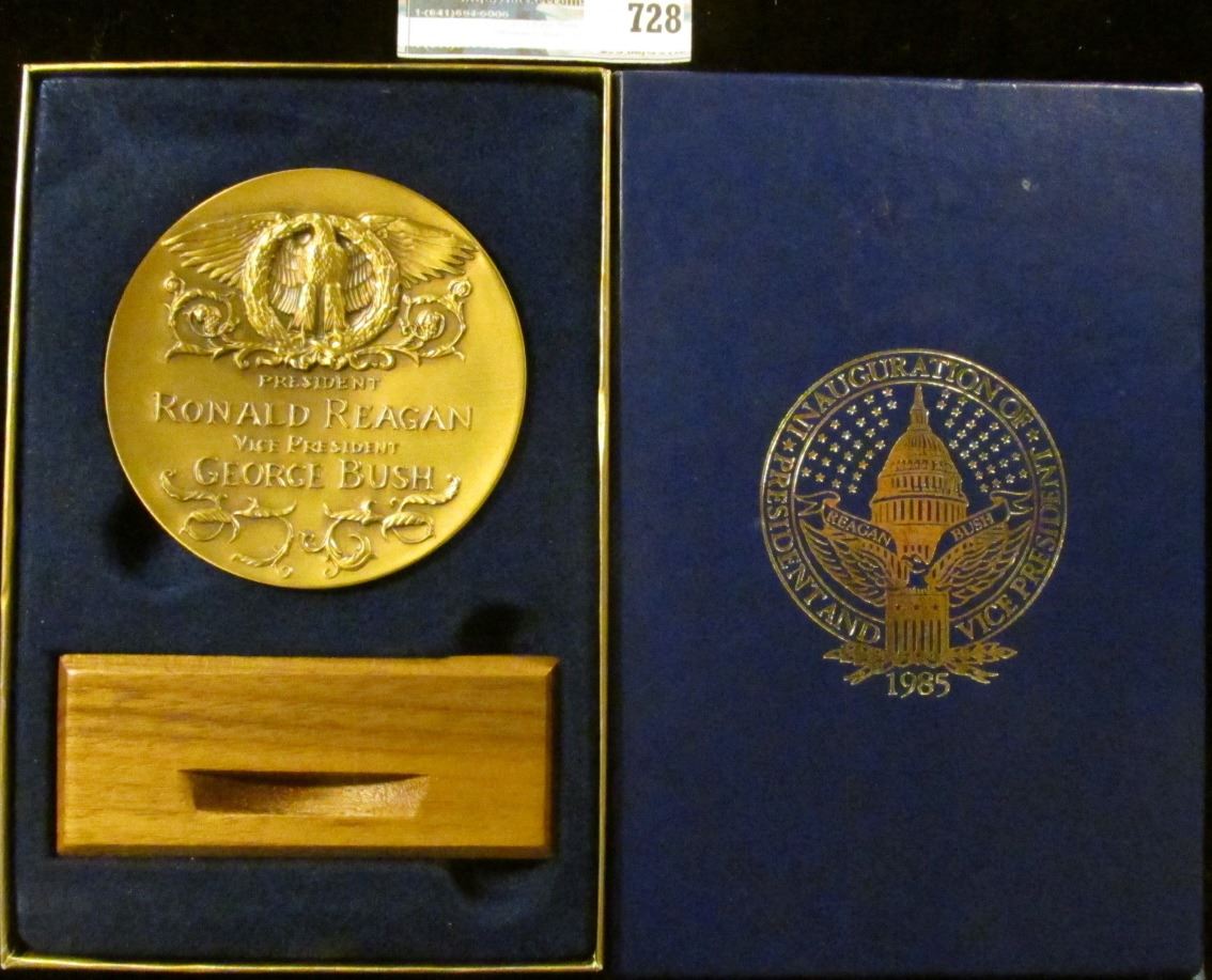 THE OFFICIAL BRONZE 2 AND A HALF INCH RONALD REAGAN/ GEORGE BUSH INAUGURATION MEDAL WITH STAND