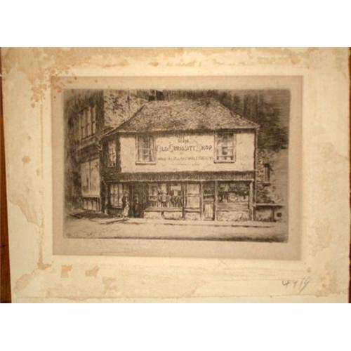 An Original etching by GEORGES HUARDEL BLY(pencil signed),The "OLD CURIOSITY SHOP"immortalized by Charles DICKENS.