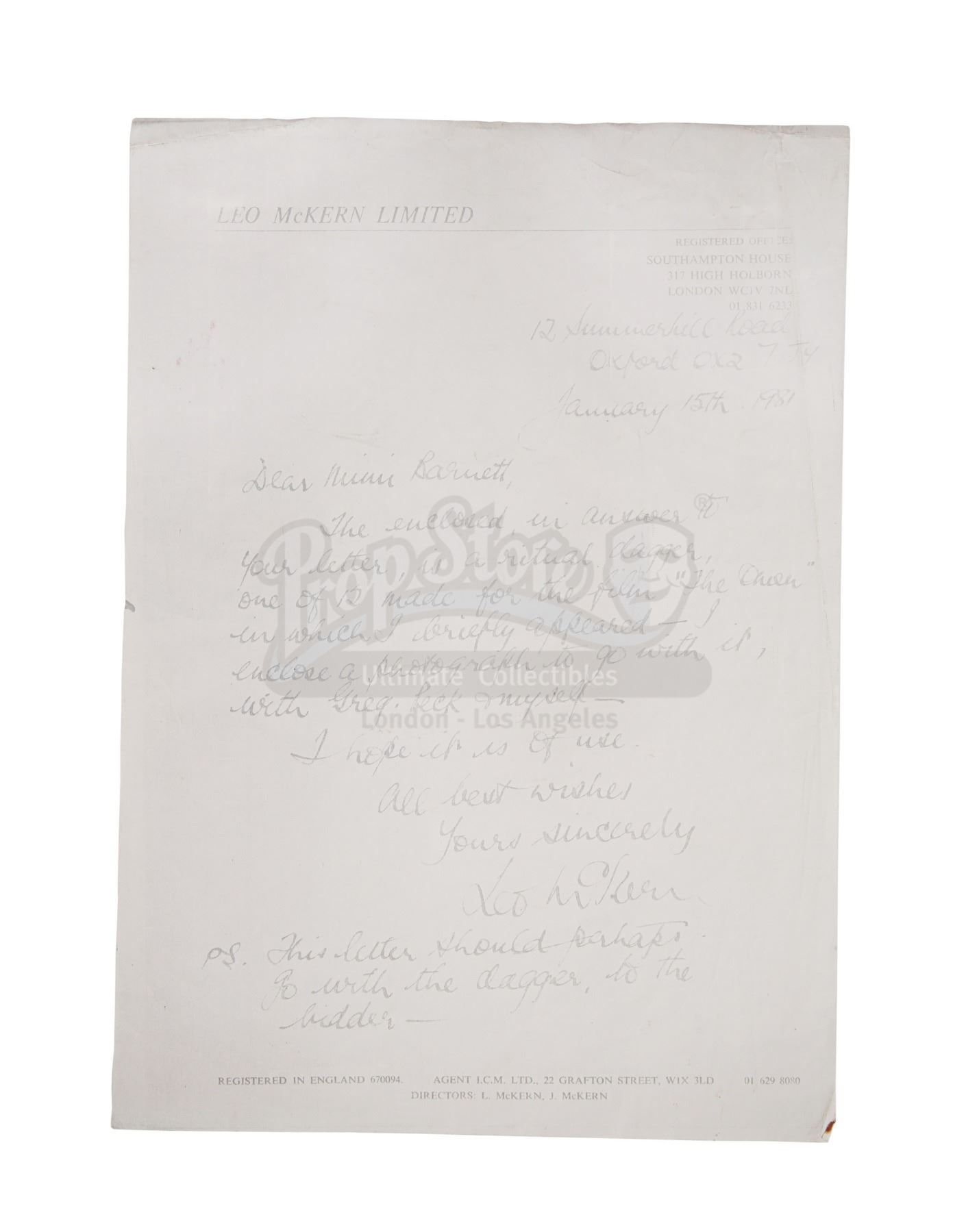 The lot comes with a handwritten letter of authenticity from McKern, which has faded over time, a black-and-white still autographed by McKern in blue ink, two additional stills and an acrylic display stand. Dimensions (displayed): 33.5 cm x 8 cm x 3.5 cm (13 1/4" x 3 1/4" x 1 1/4")