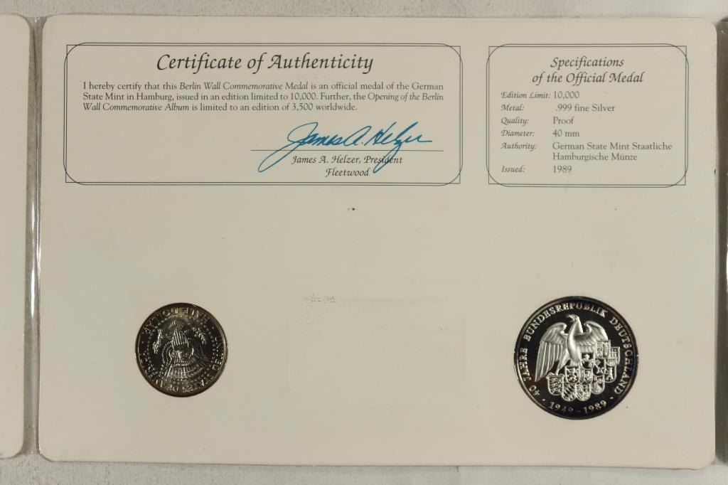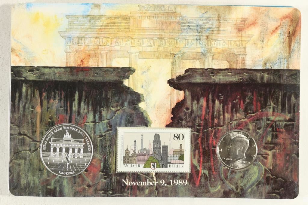WITH SILVER PROOF 1989 GERMAN STATE MINT MEDAL AND 1989-D KENNEDY HALF DOLLAR UNC AND STAMP. LIMITED EDITION OF 3500