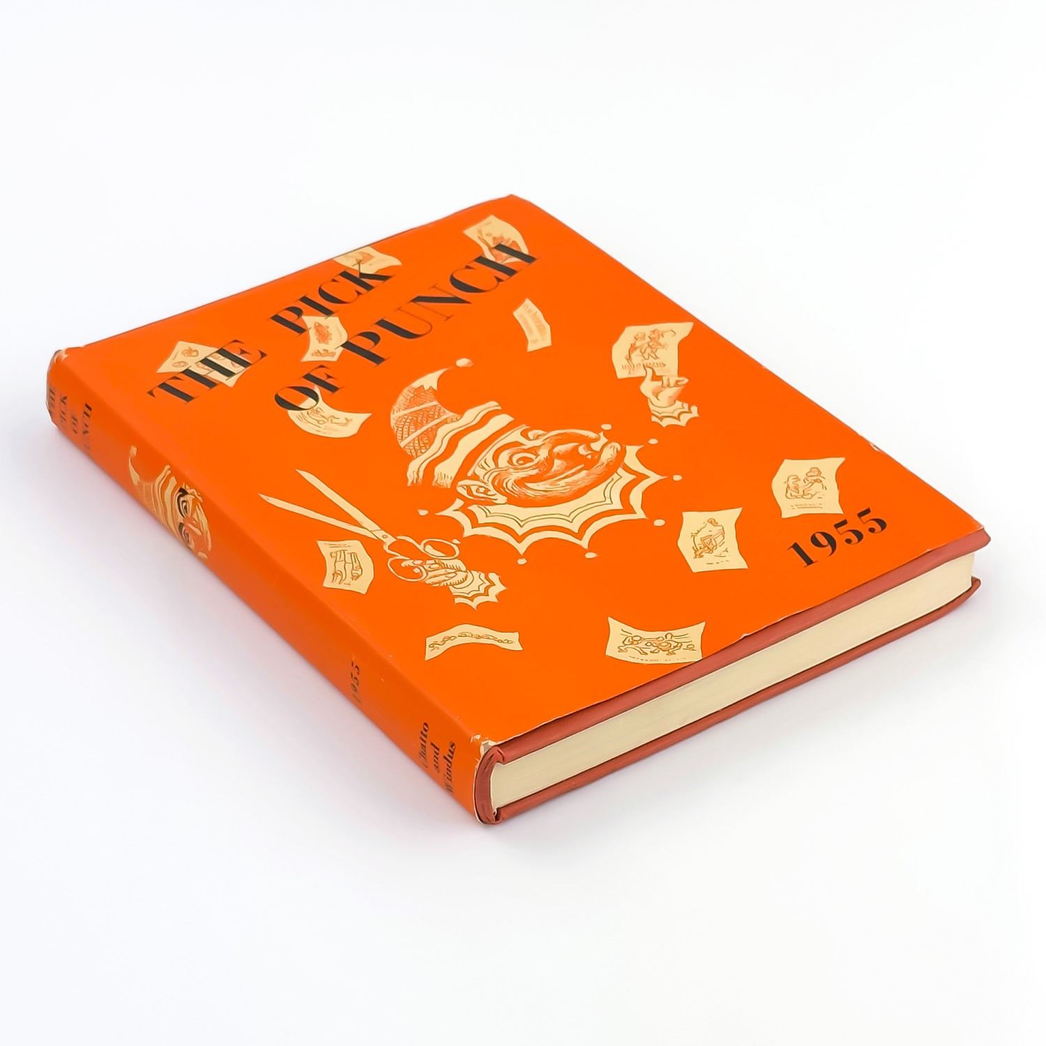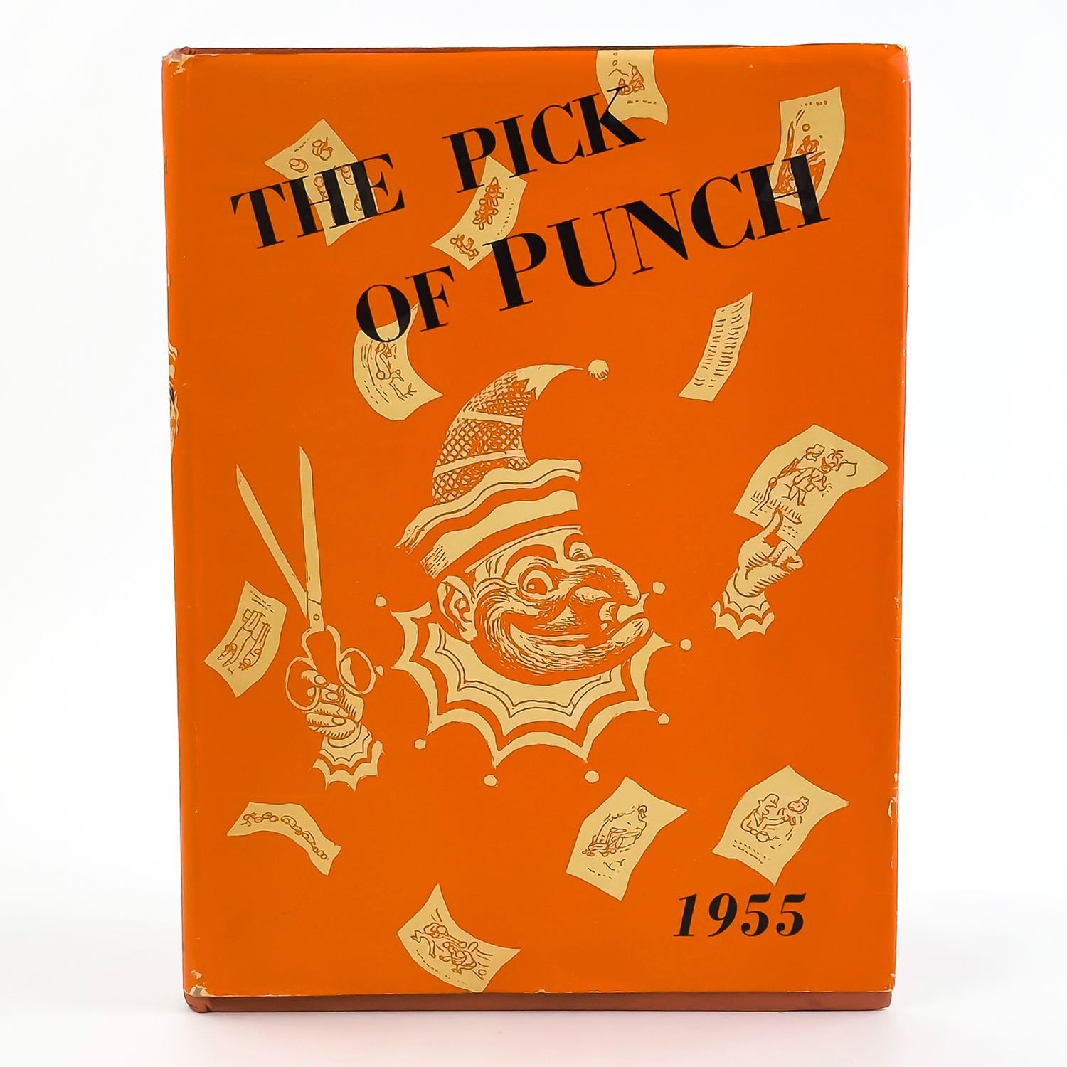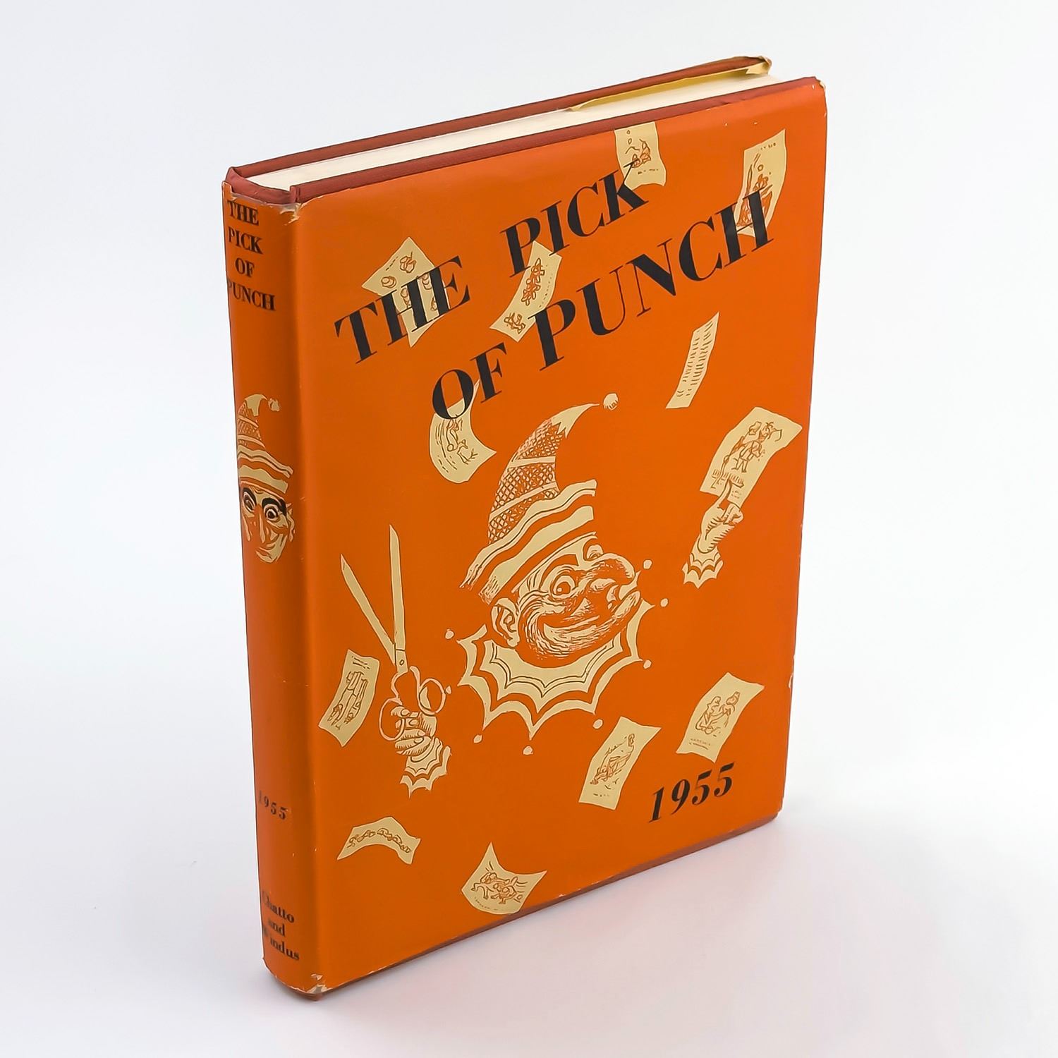#8592 - VINTAGE THE PICK OF PUNCH BOOK - AN ANNUAL SELECTION 1955. GREAT BRITAIN LONDON HUMOR HUMOROUS CARTOONS COMICS & WRITINGS BOOK. HARDCOVER WITH DUST JACKET - CHATTO AND WINDUS PUBLISHING, LONDON - 208 PAGES. MEASURES: 7.5” X 10”