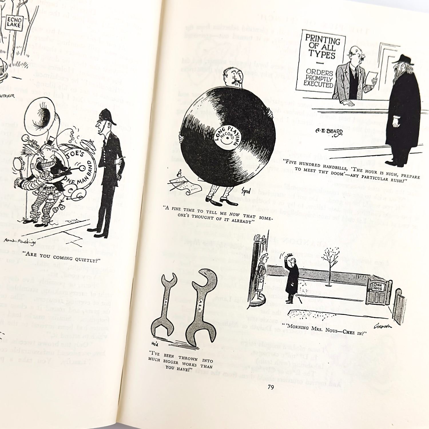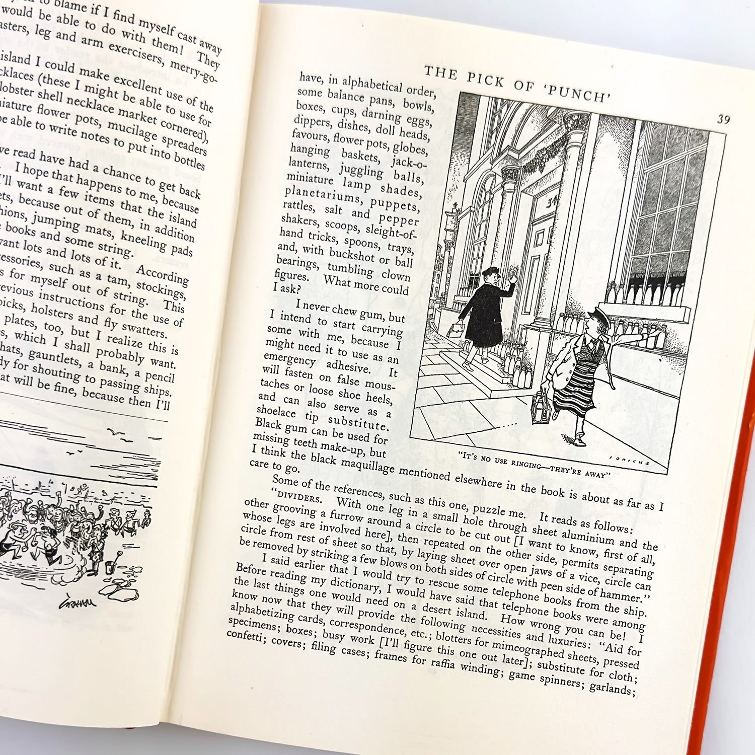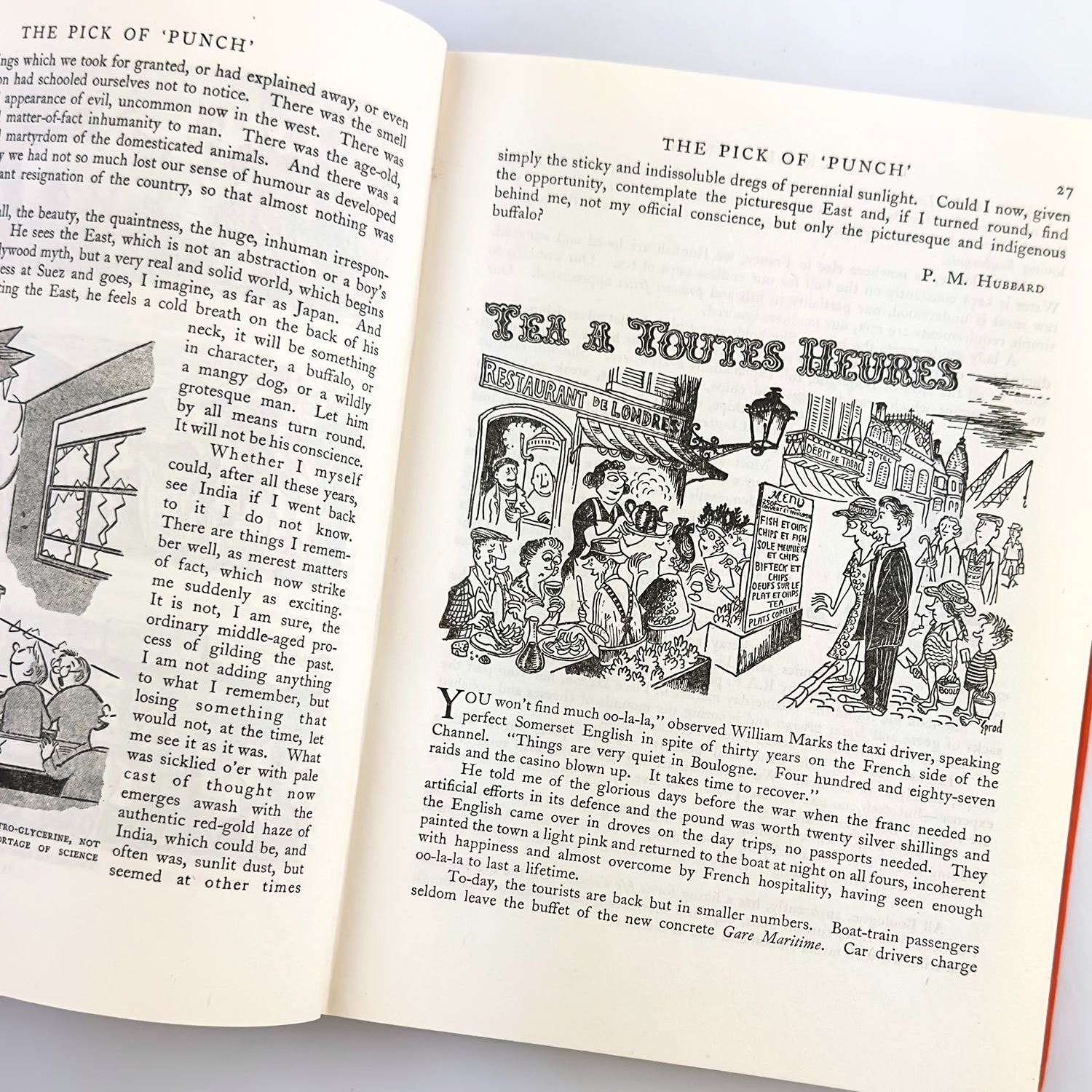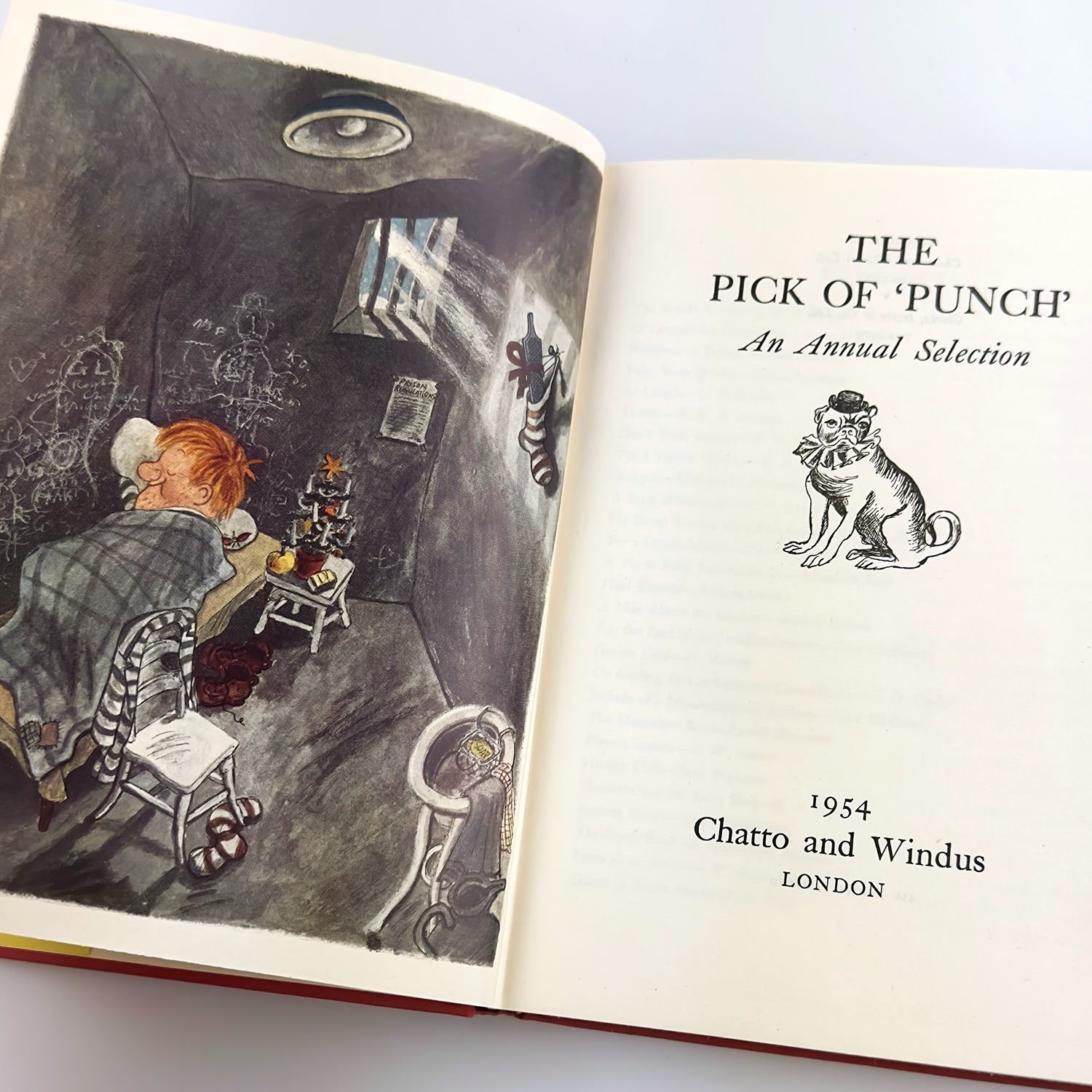 #8592 - VINTAGE THE PICK OF PUNCH BOOK - AN ANNUAL SELECTION 1955. GREAT BRITAIN LONDON HUMOR HUMOROUS CARTOONS COMICS & WRITINGS BOOK. HARDCOVER WITH DUST JACKET - CHATTO AND WINDUS PUBLISHING, LONDON - 208 PAGES. MEASURES: 7.5” X 10”