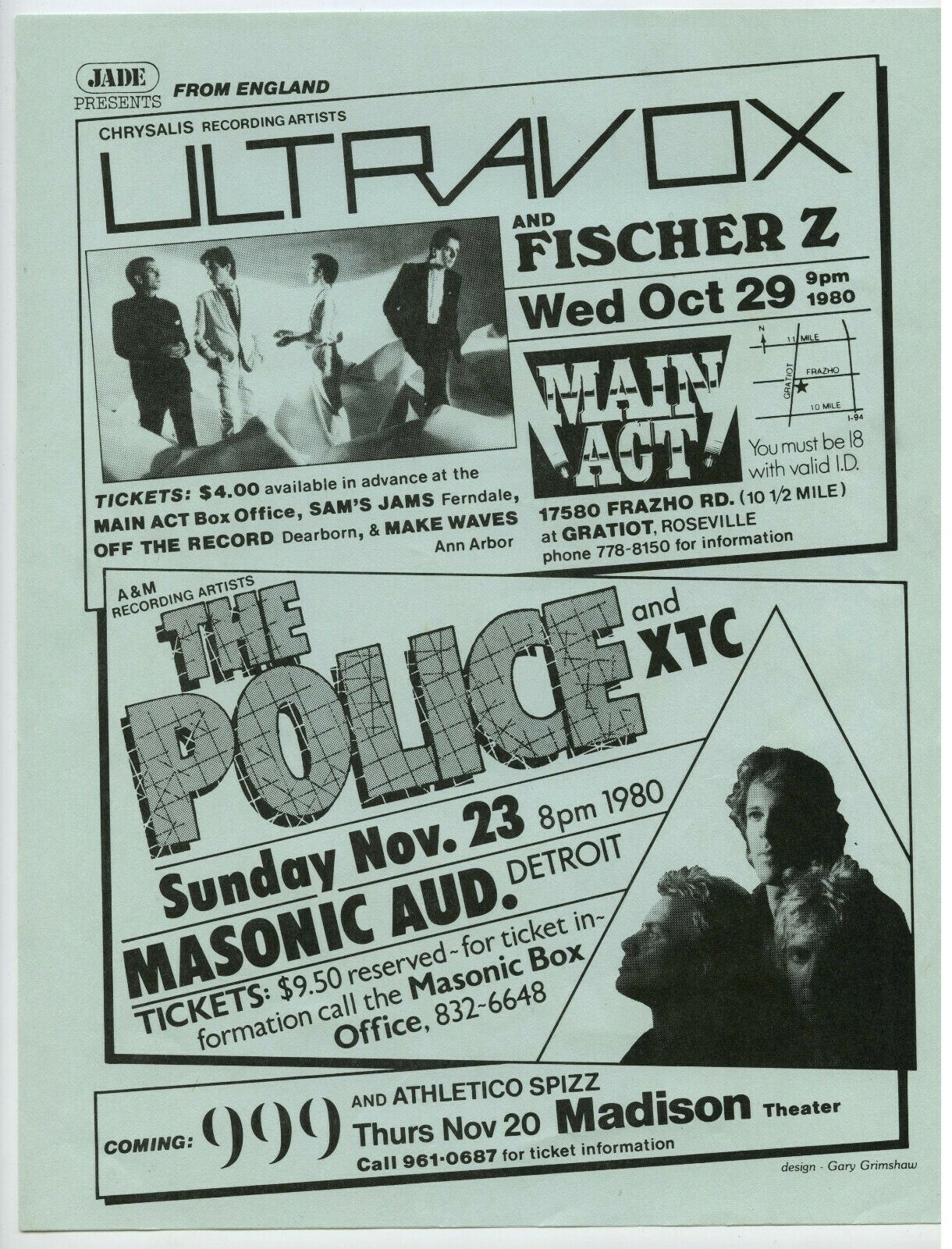 THE POLICE / Ultravox / XTC 1980 Concert Handbill