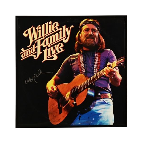 "Willie and Family Live" Framed Album Cover. Signed by Willie Nelson. 12.75 X 12.75 inches. NOT FROM RAY BENSON'S COLLECTION.