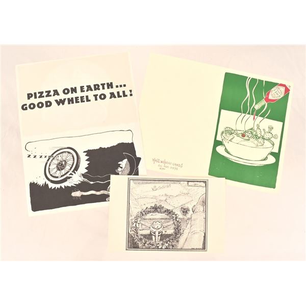 One Card Reads "Pizza On Earth... Good Wheel To All!' and is signed by Ray Benson from 1991 Whizzograms. One Card Reads "Merry Christm...