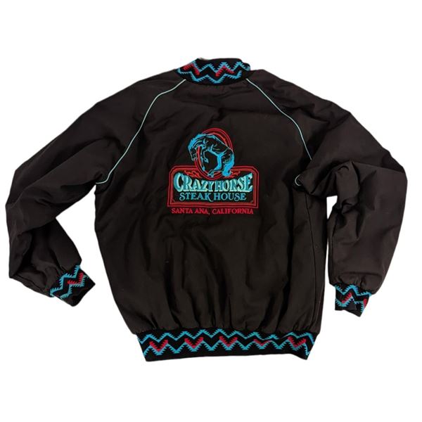 Crazy Horse Steak House Santa Ana, California Logo on Back. Crazy Horse Steak House Logo on Front Left and Ray on Front Right. Made by Westark USA. XL