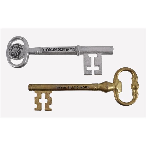 Keys to the Texas cities of Georgetown and San Marcos, presented to Ray Benson. Both measure 7" in length. From Ray Benson's personal colle...
