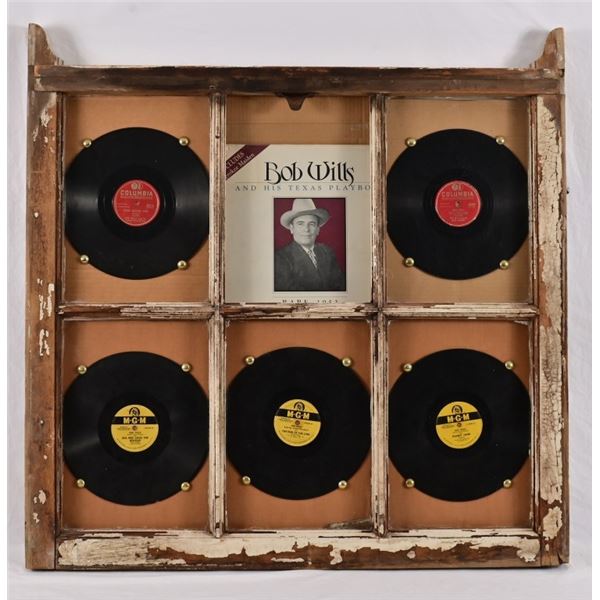 Six (6) Bob Wills and His Texas Playboys Albums Framed in a Vintage Window